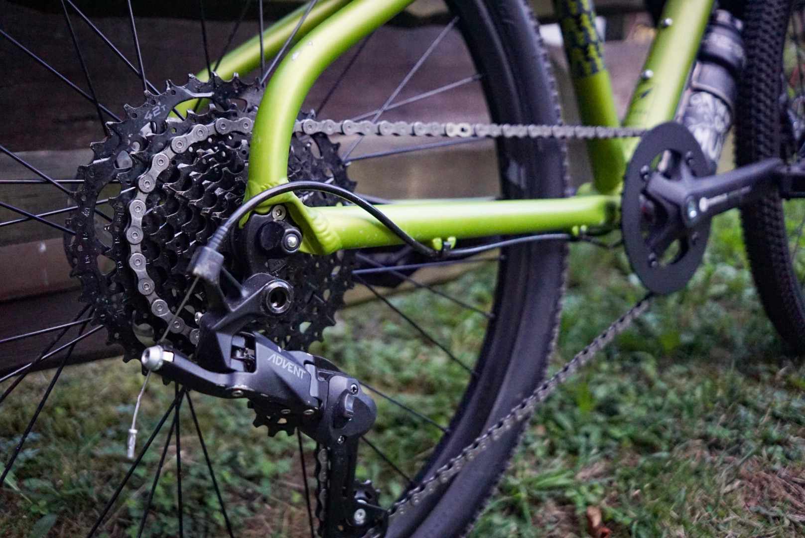If you happen not to be an adult, the bike begins making much more sense. Bombtrack has really thought things through for young riders. The Microshift Advent 1×9 rear mech has a lighter spring fitted to make shifting easier, and at the other end, the shifters have been adjusted to put them in the best position for smaller hands to reach. A low gear of 32t chainring x 42t rear should give ample spinning potential up the steepest hills.