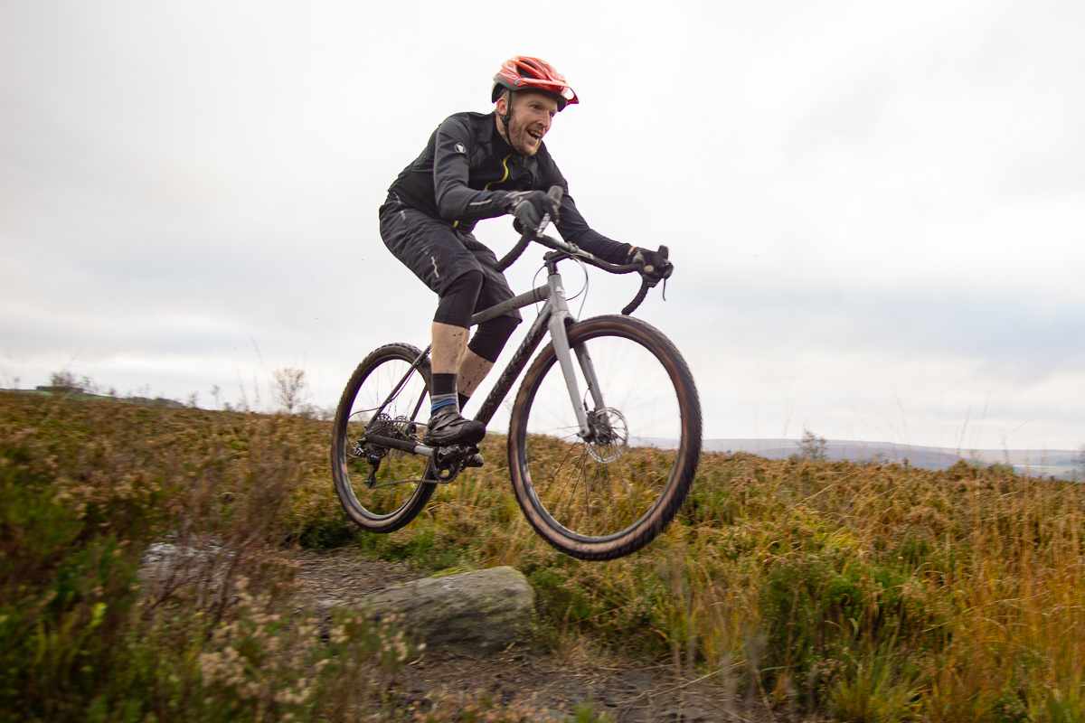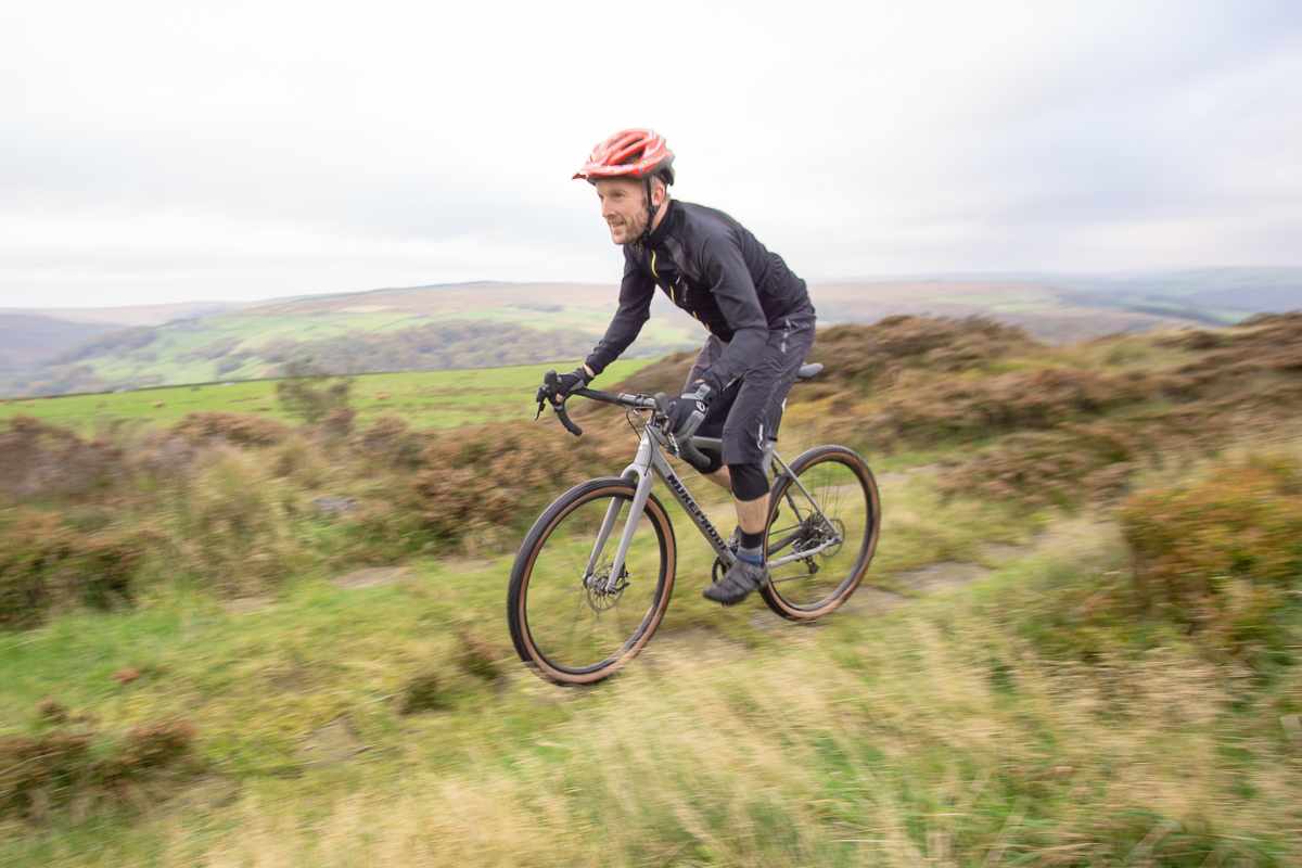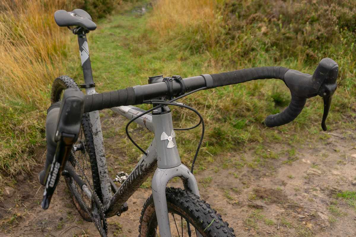 Thanks to the one-finger-friendly hydraulic brakes you can get away with riding techy stuff on the hoods or the drops. The low BB height adds to the stability and cornering, and it’s nice to see that Nukeproof have specced 170mm cranks to help minimise pedal clattering. SRAM’s single lever gear actuation takes very little getting used to, and helps give the brake levers a more positive feel.