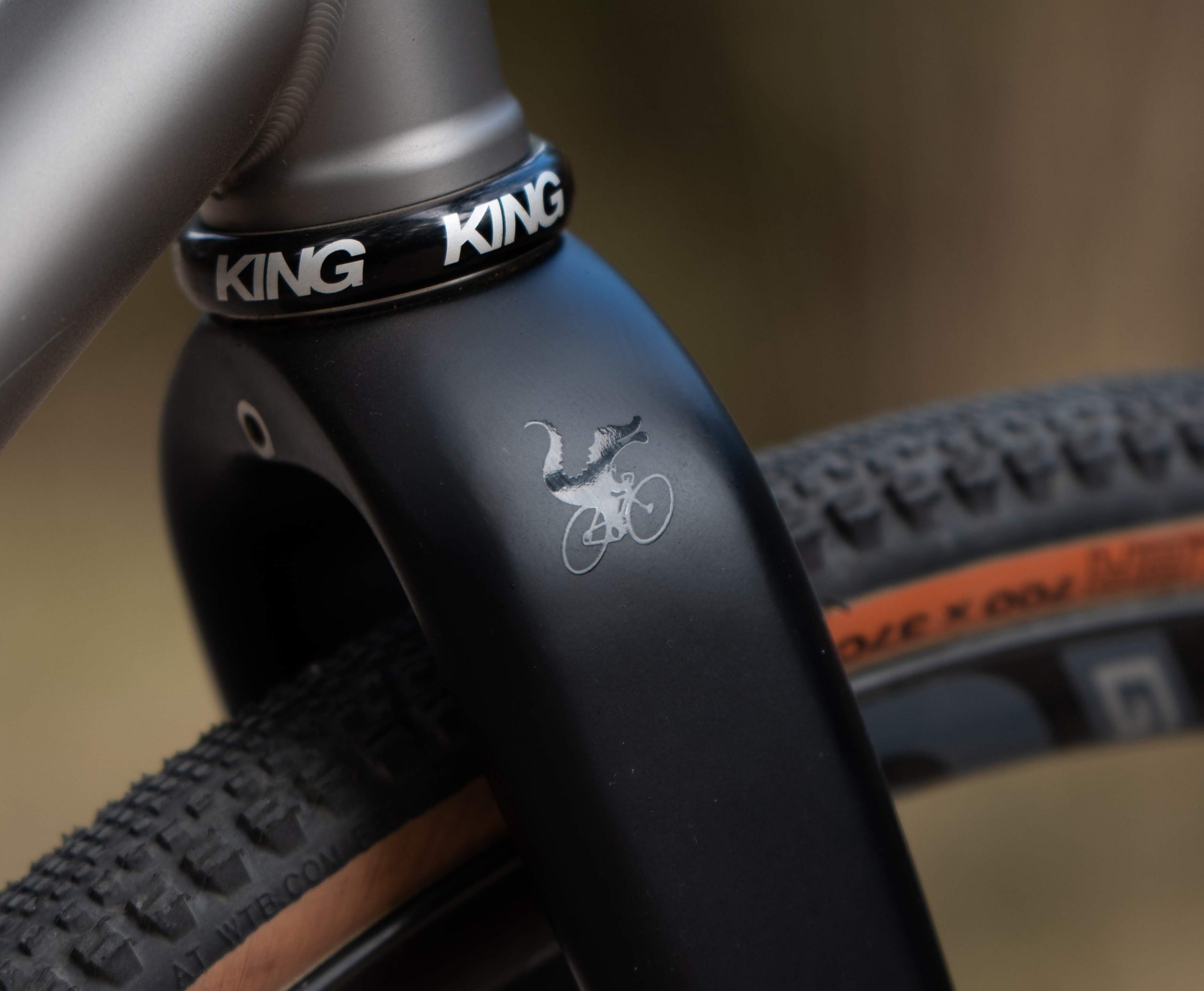 The classic clean lines of the tubing and styling of the bike enhances the aesthetics and provides a finish to match its price. The details are prevalent whatever area of the bike captures your gaze. The internal cable routing is very neatly executed. The frame features three bottle cage bosses, also eyelets for a mud guard and clearance for 45mm tyres. I really like the striking metallic green anodizing of the Moots logo against the matt frame colour. The craftsmanship of the hand painted headtube badge is the perfect complimenting touch.