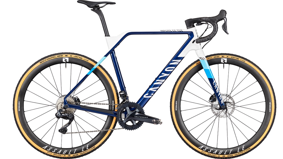 The 3XS and 2XS bikes come with 650B wheels, which Canyon says maintains handling qualities across the sizes. Sizes 3XS to XS use smaller disc rotors (140F/140R), while S to L use 160F/140R, and XL and 2XL use 160F/160R. Canyon considers that these are enough to meet the specific demands of a ‘cross course, rather than the terrain of a gravel or adventure bike. The CF and CF SLX models also offer a 2x chainset option. There’s no women’s specific option in the range since Canyon doesn’t think there’s a difference in rider demands at race level, and the huge size range should cater for smaller riders.