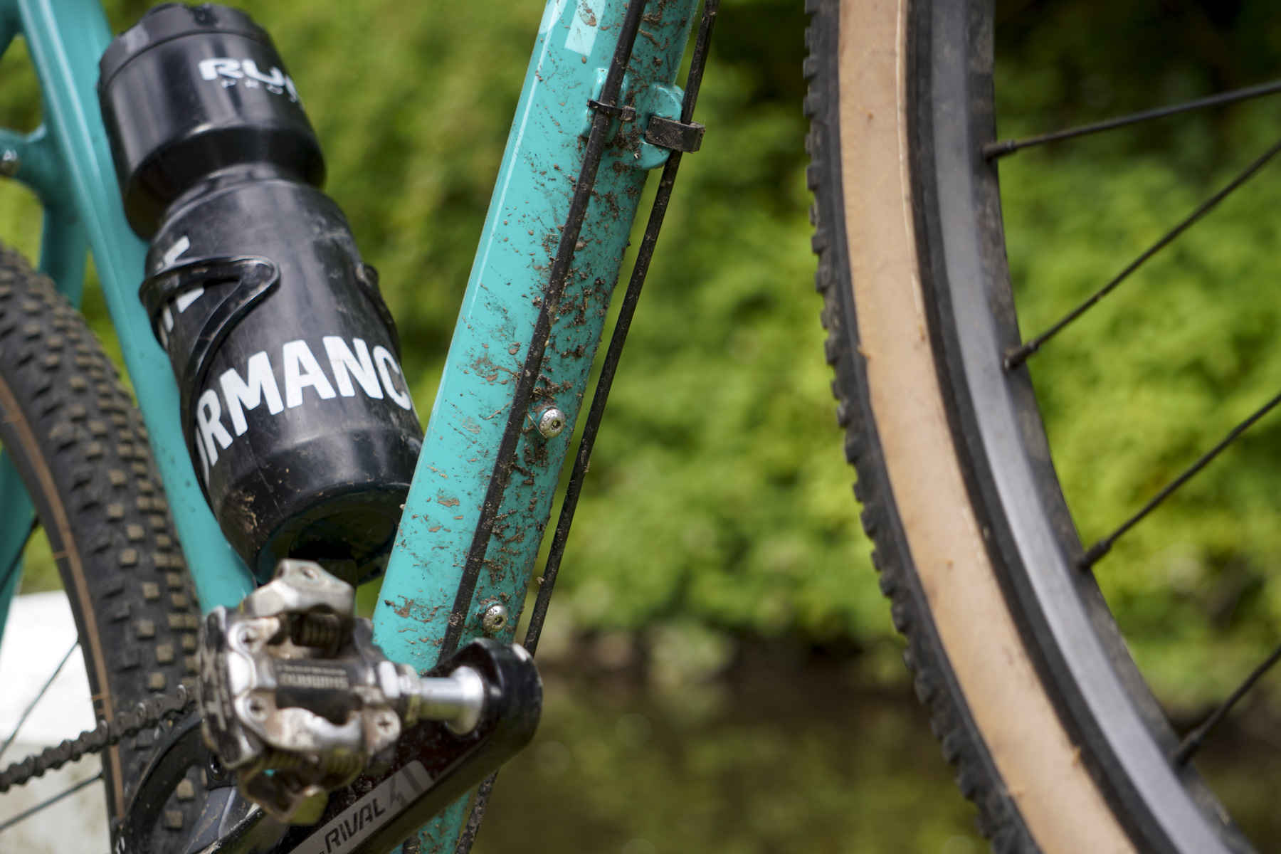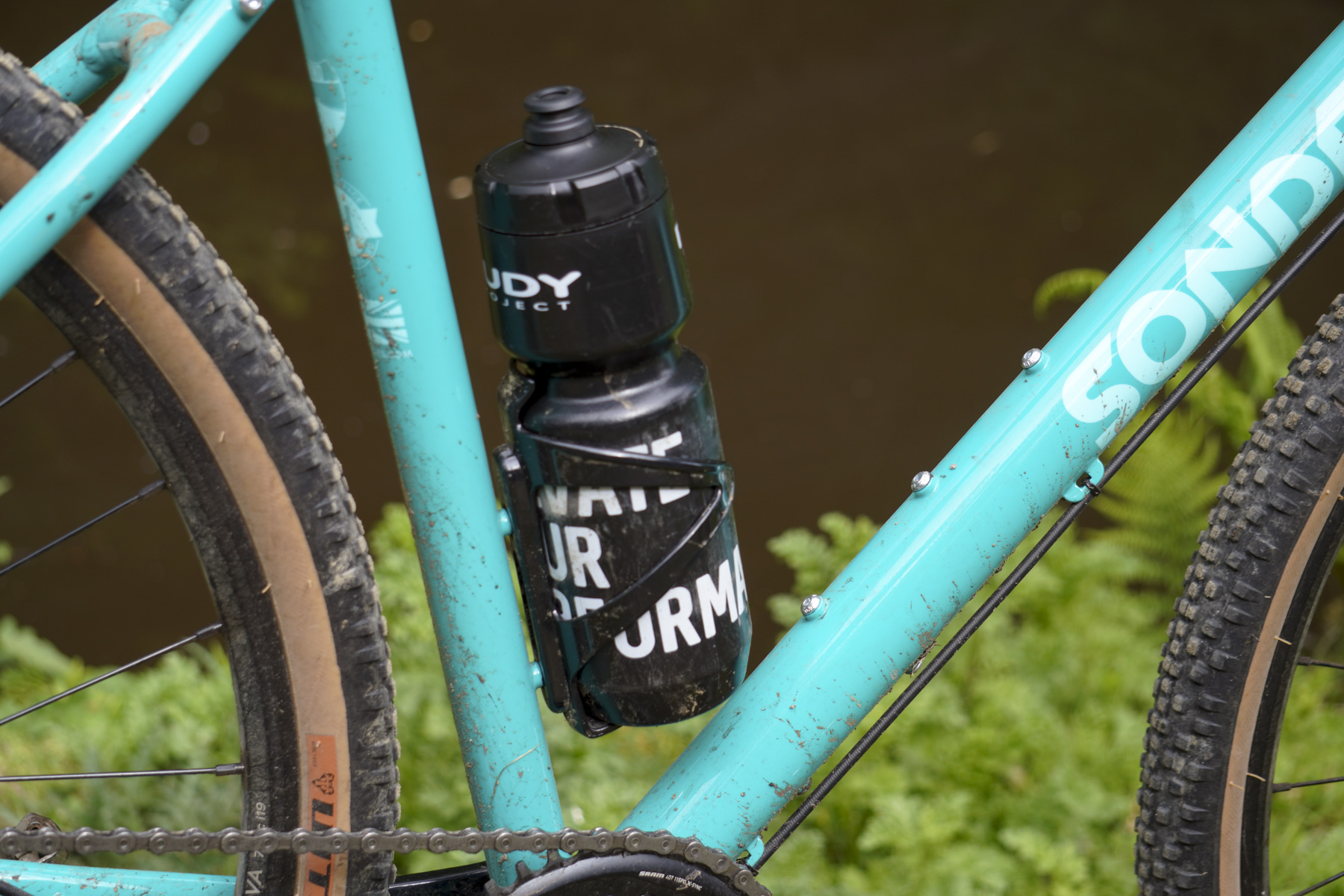 There are rack mounts or bottle bosses everywhere. A pair on the seat tube, a triple cluster on the inside of the down tube, and a further pair on the underside of the down tube. There are rack or mudguard mounts on the fork and rear too. Having tested this bike in lockdown, I haven’t had cause to carry more than a bottle, but if camping away from home became an option then you’d have plenty of choices for where to attach your various bits of kit. So far as I can see, the only omission from going #totalwildernesslife is that there’s no dynamo routing option on the fork – just an internal front brake route. All the rest of the routing is external, with good sized metal mounts for either clips or cable ties to hold things in place – there’s no risk of any of these being thin and flimsy and breaking off. I’d recommend adding a chain stay protector as mine showed some chips to the paintwork after just a couple of rides, and I was careful to protect the frame when I added a bar bag.