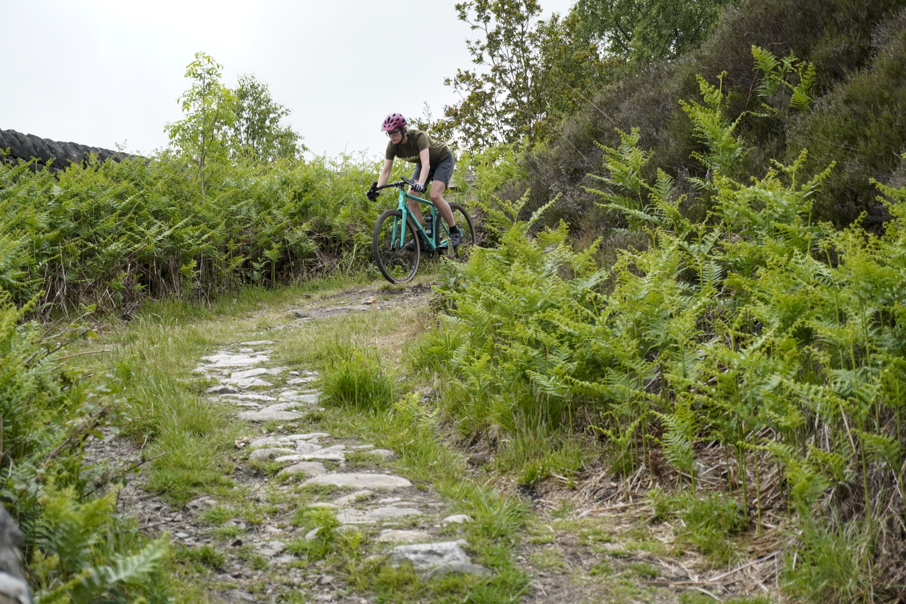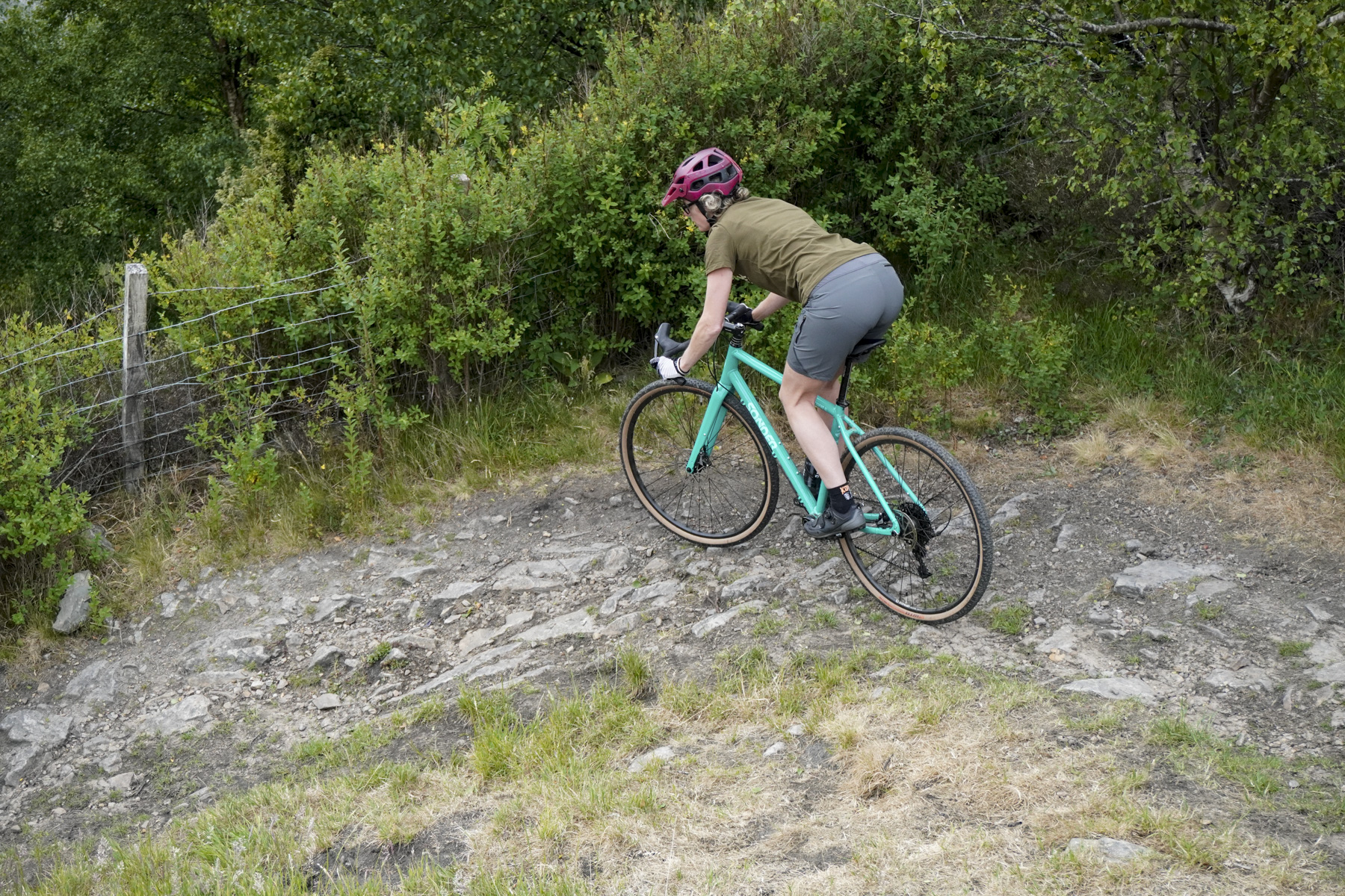 The ride quality is really good – it’s nice and quick to pedal along, even with the slightly knobbly tyres that are fitted. I’d be tempted to go for something even slicker for multi surface use, then add something much knobblier for full time off roading – the WTB Resolutes that are fitted seem to sit a little between the two, being a bit slower than a slicker tyre, but not really adding much grip in mud. That said, I did clean a number of dry rocky climbs on them with more ease than something slicker would’ve offered, so maybe it’s worth the trade off on road speed. As well as being nice and nippy, the ride is comfortable, much more so than I would have expected for an aluminium frame. That’s especially remarkable since I ran this bike with tubes, not tubeless. The only time I noticed any real harshness was on my regular test descent down packhorse trail. This is pushing the boundaries of what most gravel bikes might expect to see, and while the ride was a little harsh and jolting, there was no sense that the bike couldn’t take it, and a tubeless set up would likely help things a little. The fork remained firm, with no sense of twanginess on square edged hits that I often find disconcerting in a gravel bike.