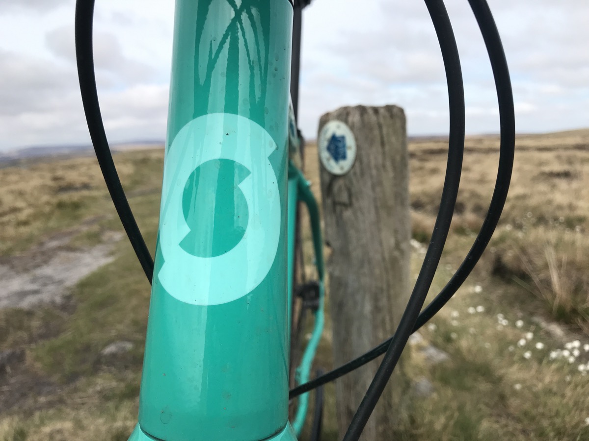 Initially, I thought that the handlebars were a revelation, and then I wasn’t so sure, and now I think they’re still better than standard drop bars, but with some potential shortcomings. The key thing is I’ve had no weird nerve troubles while riding this bike – something that was previously such a problem that I had to stop riding gravel bikes. I think that’s down to having a less awkward braking position on trickier descents – the wrist is less rotated, I think creating less strain. Braking on the hoods is much easier and more effective – on a gravel bike with vertical brakes I’d rarely attempt to brake from the hoods off road on anything more than fine and even gravel (of which there is very little in Calderdale), but with these bars that’s a very natural and effective thing to do.