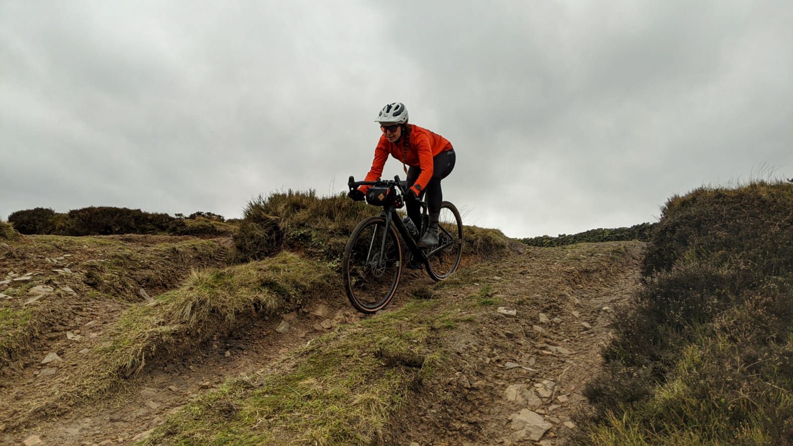 Approaching awkward sections of trail that look like I might get caught up in, I’ve found it surprisingly easy to push the front end over them, and the back end follows with little effort, the 10mm elastomer really showing off. That small amount of rear travel is doing a great job of adding a supple, softer feel to the ride, so much so that I have found myself really hammering down rocky bridleways and feeling more confidence than I knew possible on a gravel bike. It just makes the bike feel like it can take a beating, it’s not rattling or twanging, or throwing me around like so many rigid bikes can.