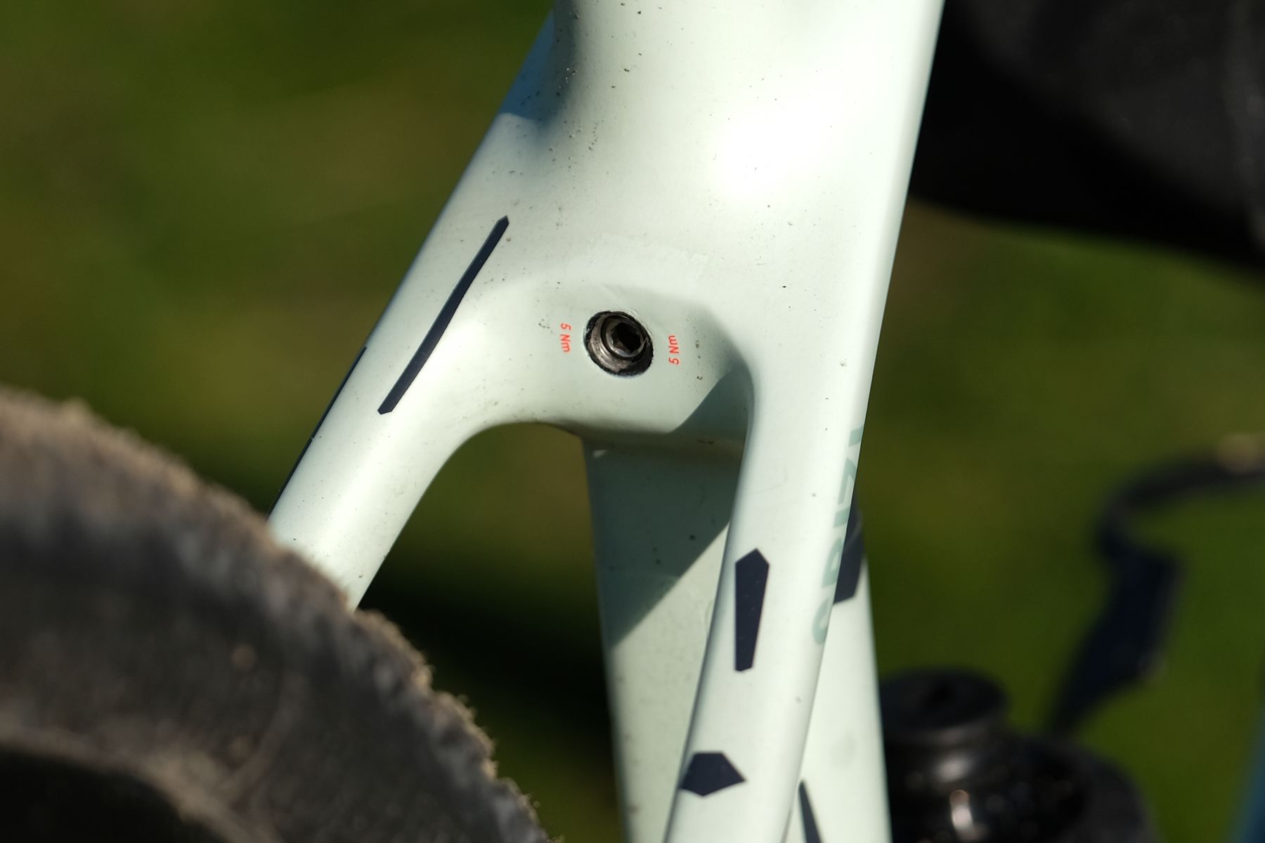 Main triangle cage mounts, a top tube mount and ‘anything’ triple mounts on the fork offer up plenty of potential for luggage carrying. All these points, plus the seat post clamp and front mech point, are annotated on the frame with the size and torque setting – so if you do lose one in the middle of nowhere you know what to go asking for in the local bike shop in Uzbekistan, or wherever you find yourself.