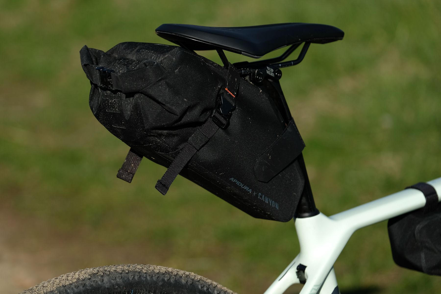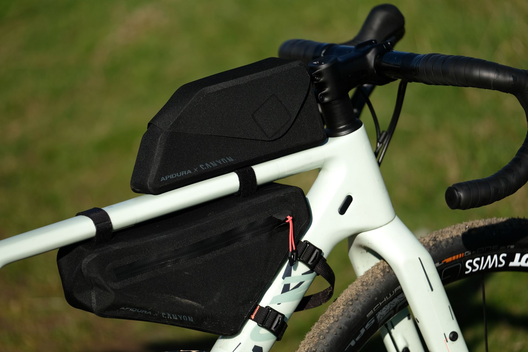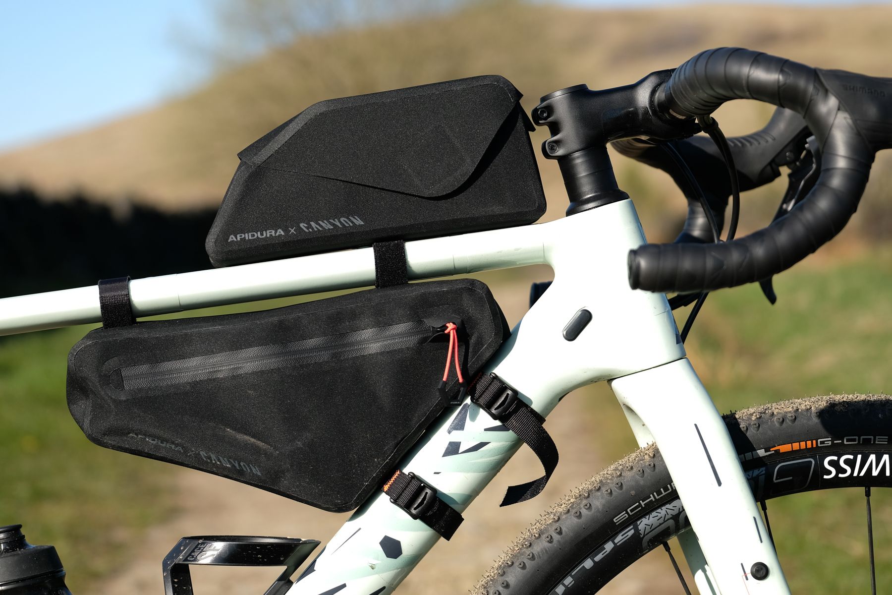 Perhaps to encourage you to use all those luggage points, Canyon has partnered with Apidura to create a bespoke collection of bags for the launch of the Grizl. These are available to purchase separately, and the bike comes with a range of frame protection stickers to help prevent any rubbing issues. These bags are intended more for pack free daily riding, rather than the rigours of that multi-month epic to Uzbekistan.