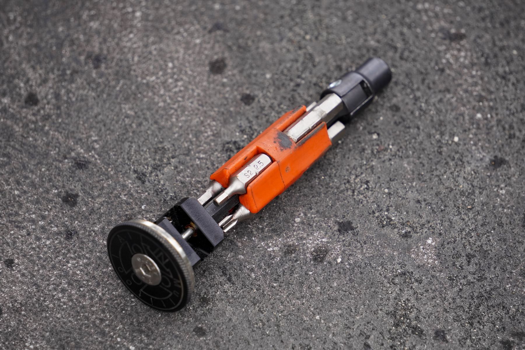 The tool itself is loaded up with 4 Allen keys (3-6mm), T25 Torx, a Phillips screw bit, and a chain tool. The bits are a generic size so if you needed to customise the tool you could actually buy the specific bits, but I’ve found this to have everything I need for minor trailside tweaks.