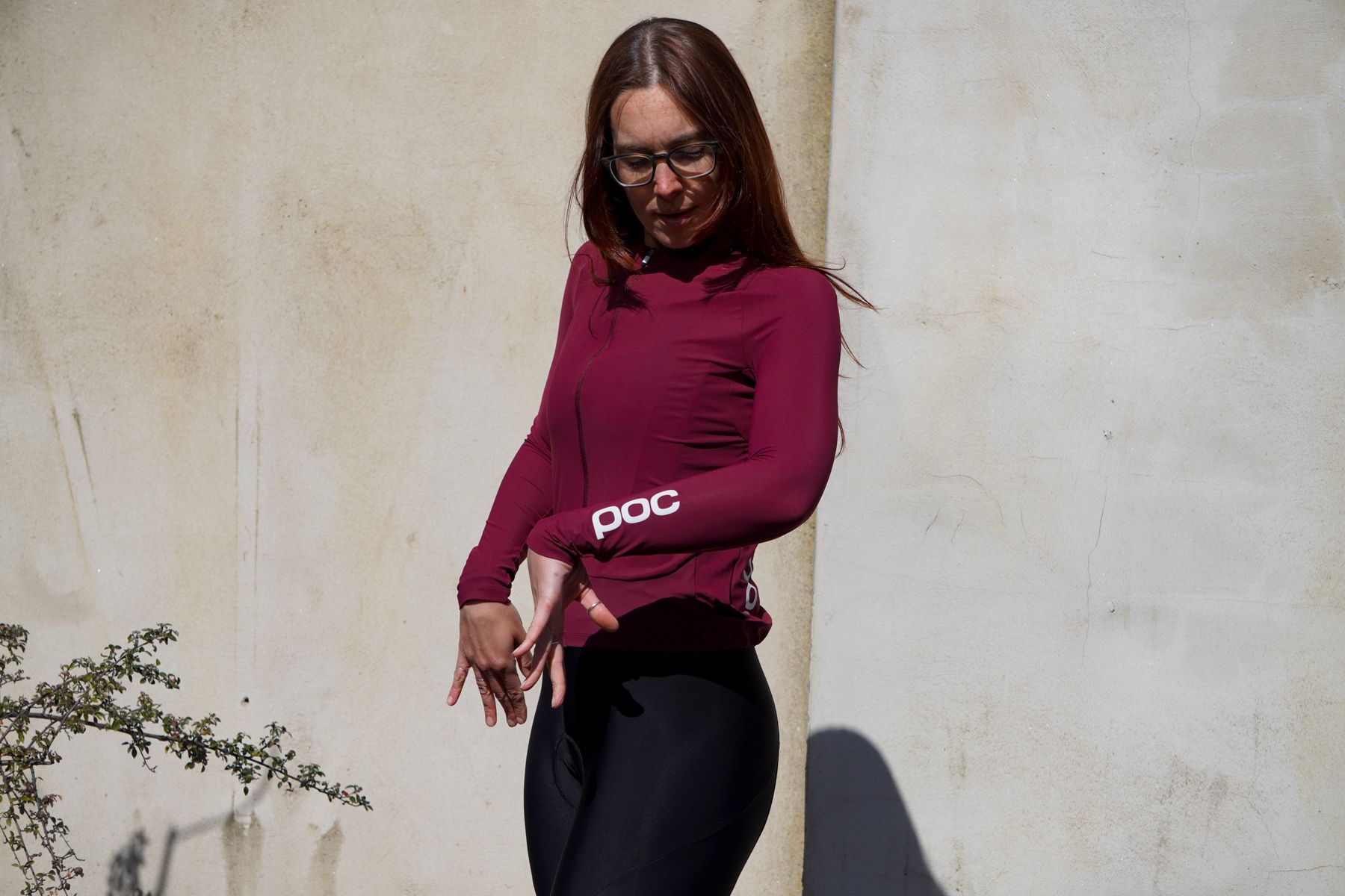 The fit could be better on me. I have wide hips and a narrow waist, and quite a long upper body, and I’ve found that when bent over in riding position the stomach bunches up quite a lot. It’s a small complaint that’s cancelled out by the comfort and function of the jersey though. The lower back has a strip of grip tape that helps keep the jersey in place, the arms are a great length for if you wear arm warmers, and the top of the zip protects your neck from being nipped when you’re one-handedly zipping up half way down a descent.