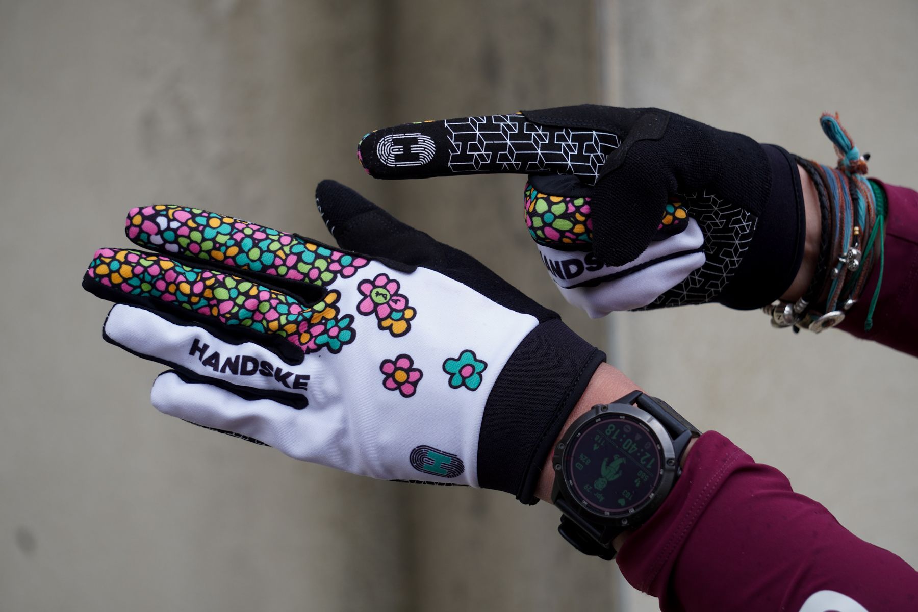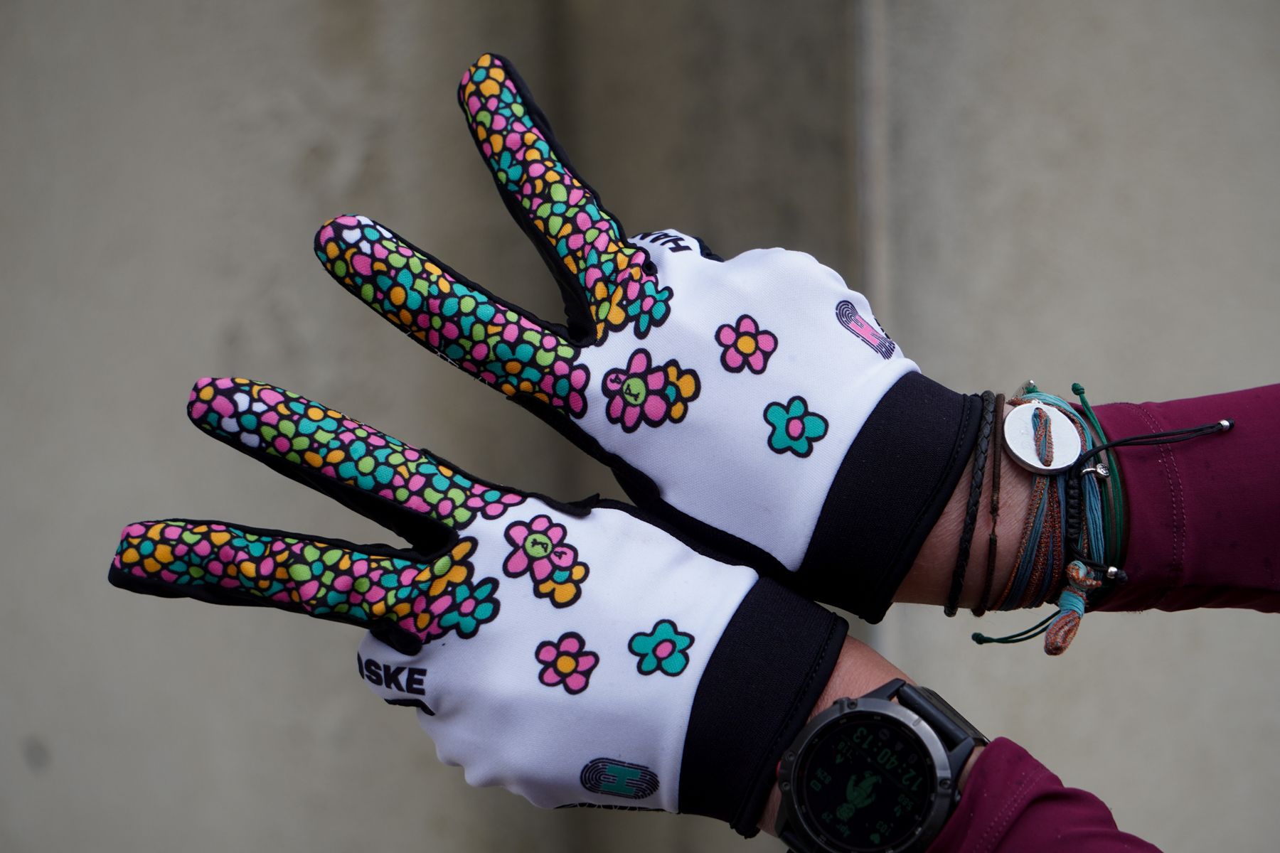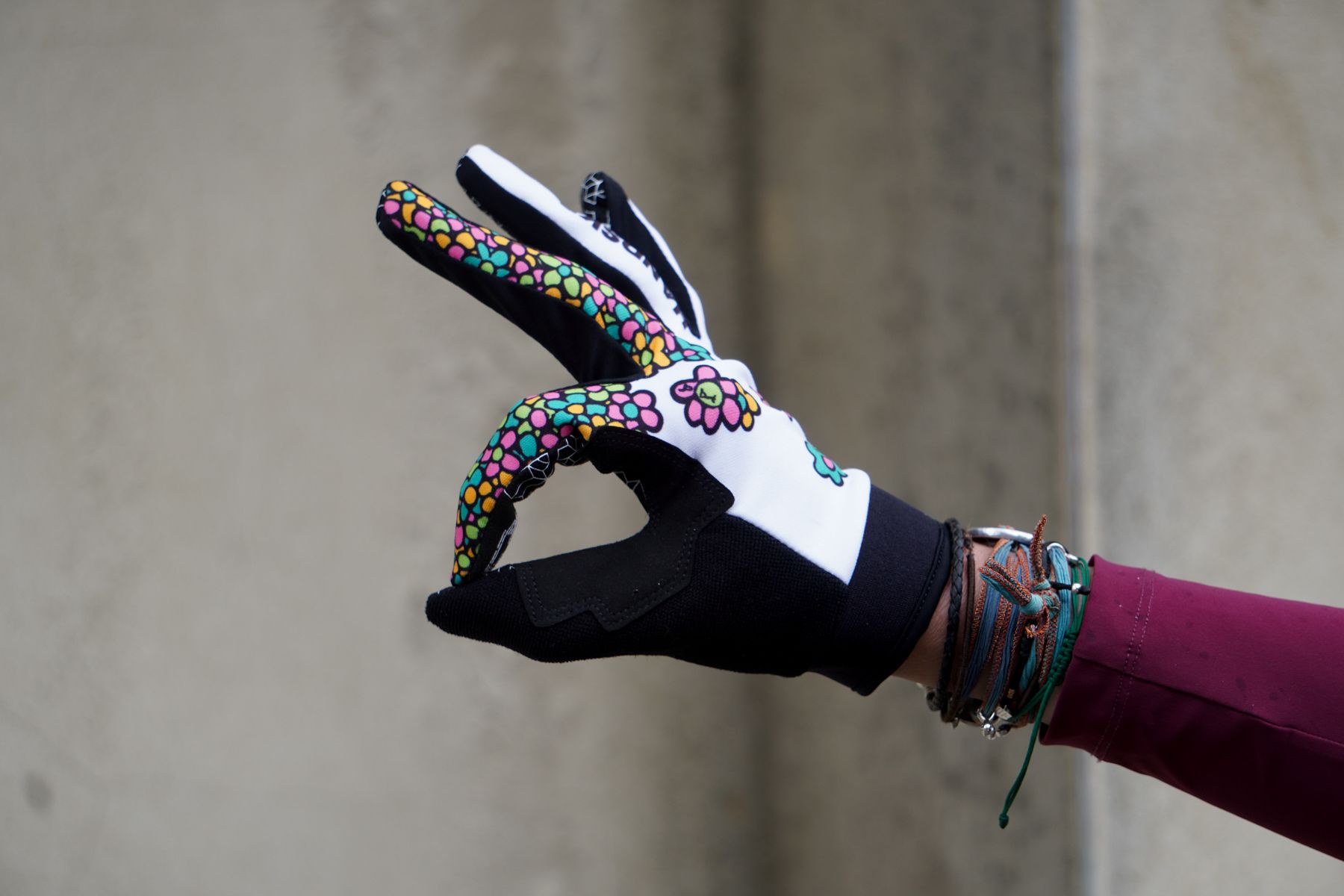 When Hannah first gave me these gloves, I thought ‘Oh great – white gloves’, rolled my eyes and stuffed them in my back-up kit bag. Then the sun came out and I needed some mid-weight gloves to wear with my short sleeved jersey. These are short, so only cover your hands, meaning with most long sleeved jerseys or jackets you’ll be left with a gap. But they’re such a great option for keeping the wind off, and they look fantastic! Who doesn’t want bright flowers on their fingertips? If you need a spring/summer glove to take the cold edge off and just keep your hands comfortable on your bars, this is the style to go for. If you’re out in the depths of winter you may want more wrist coverage.