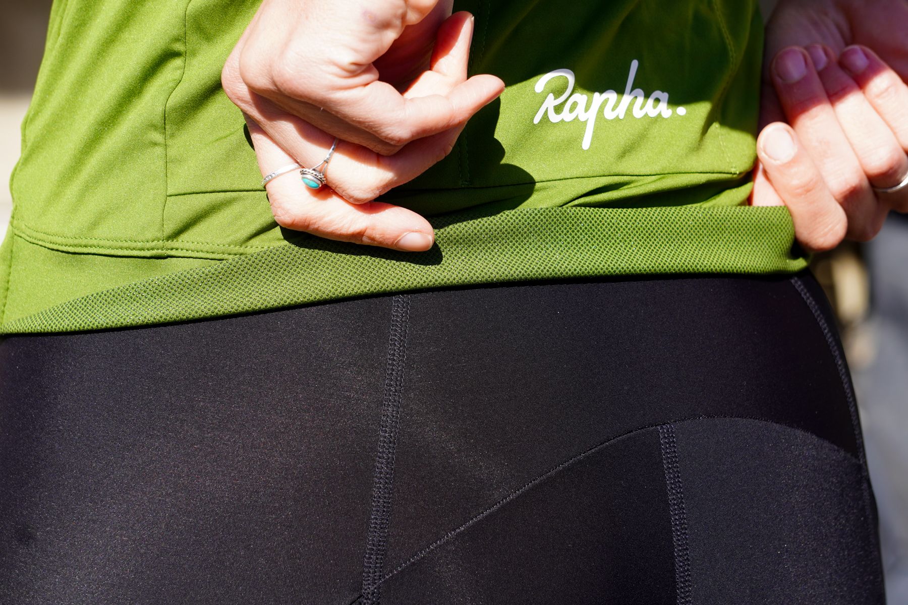Something you may not consider when buying a cycle jersey is how it copes with fully loaded cargo pockets. I have unfortunately found myself with several jerseys that simply can’t carry all the items I need without hanging too low or flopping to one side. The Rapha Core Jersey is one that I’ve been pleasantly surprised with – managing to carry a jacket, banana, several snack bars, phone and keys without moving out of place.