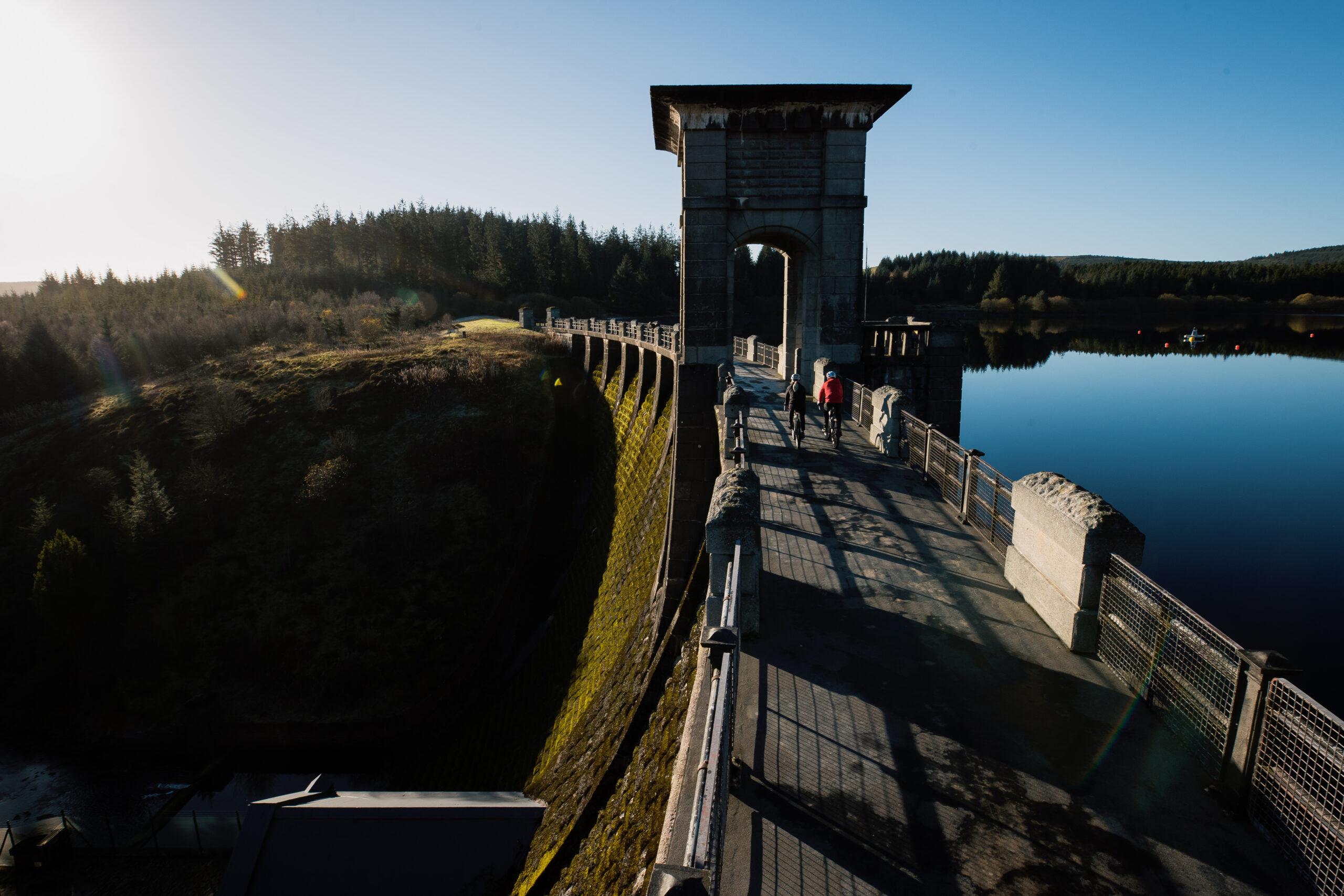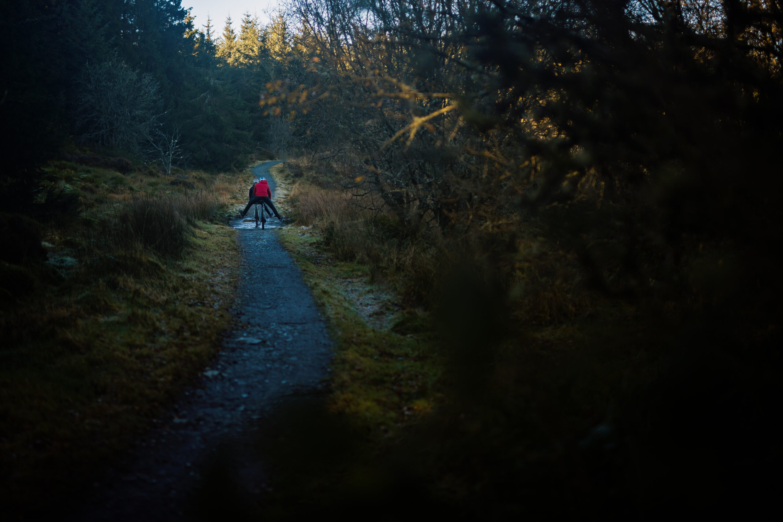 Wales has blessed us today and the water acts as a mirror to the surroundings and sky. A game of dodge the dog shit across the dam ensues, Adam taking it as a chance to practise his stoppies and 180’s over the little brown land mines before we enter the woodland surrounding the reservoir. Despite the sunshine, it’s still November and temperatures are still in the minus figures, but least you can layer up for the cold and the meandering route has a few climbs to warm you up.
