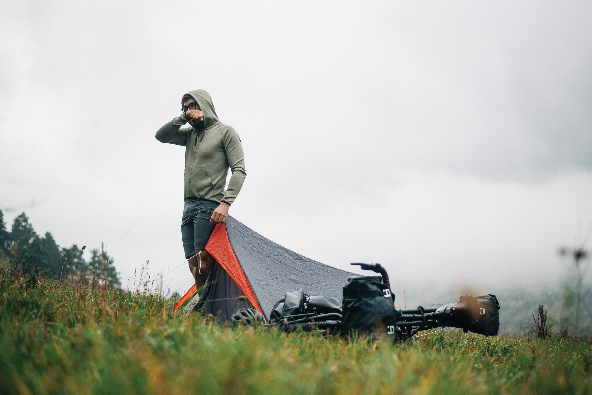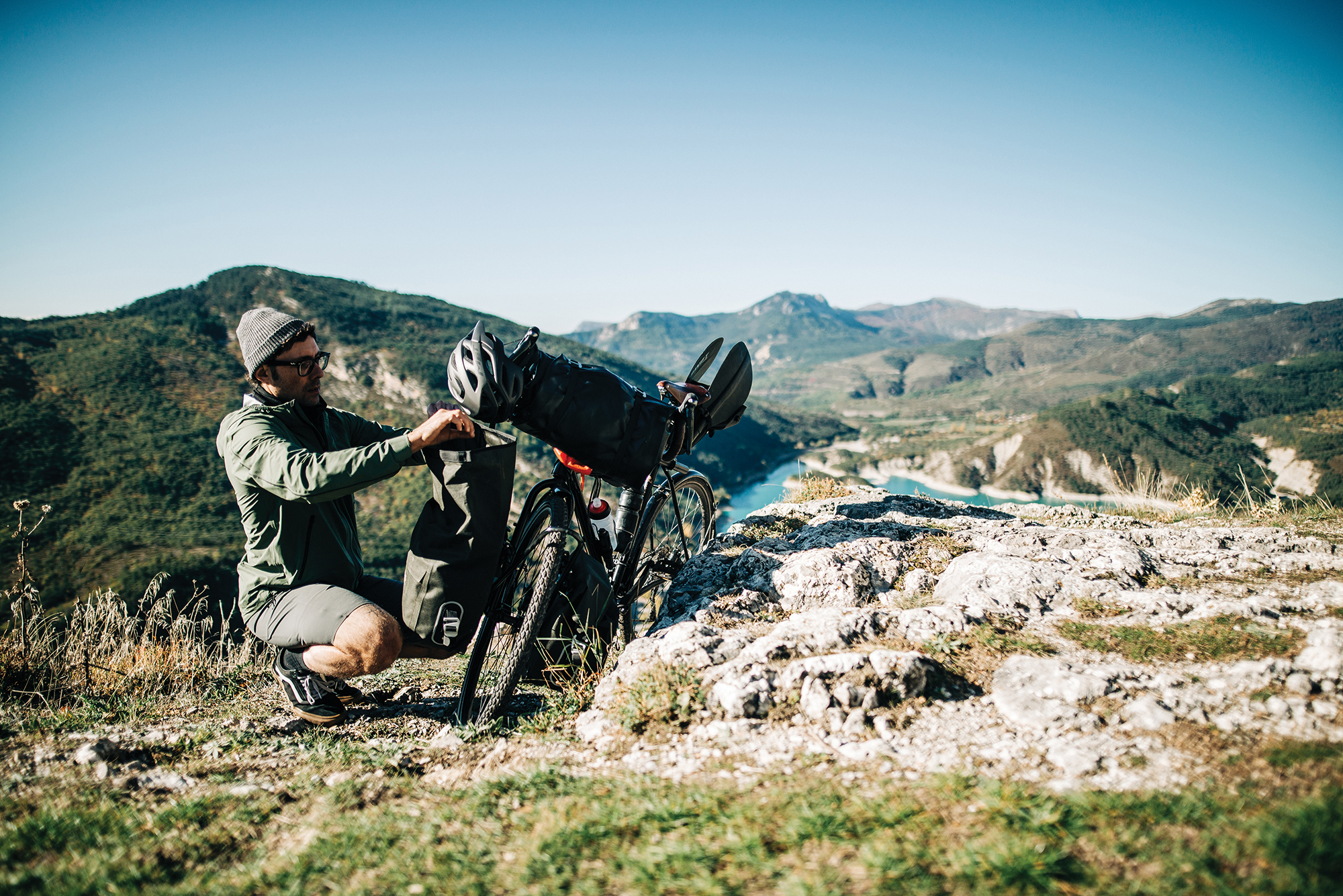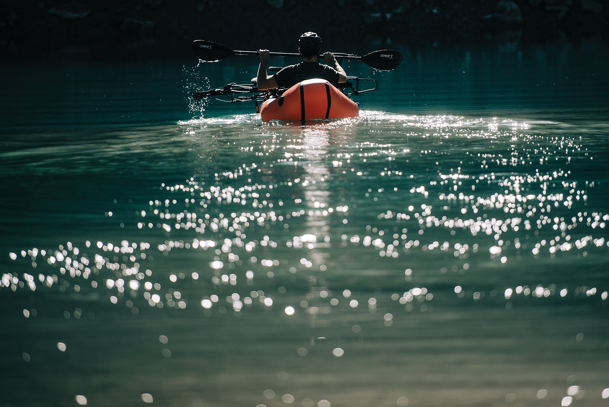 What started as a post-lunch joke ended up as a proper challenge. We found a French company that makes super light and foldable packrafts that work well for bikerafting trips because you can fold them up and carry them on your handlebars. The next challenge was to find the proper set-up to carry all the gear for a 3 day/2 night bikerafting trip. From carrying the paddle to the tent and all the gear, we turned the new Sutra into a proper pack mule.