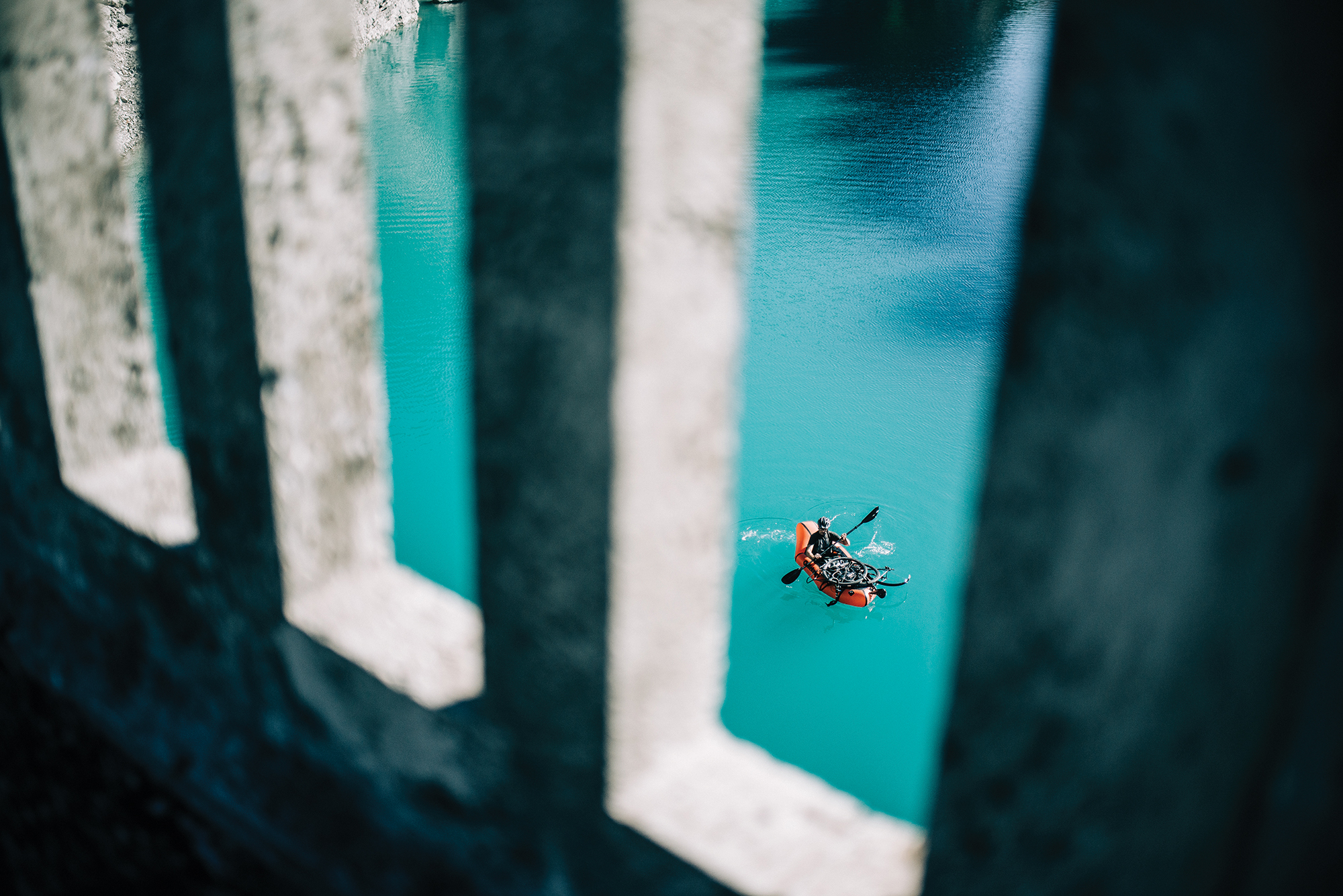 Kona Europe’s office is based in Monaco, surrounded by never-ending riding opportunities. Romain Barrez—the rider featured in the Sutra video—joined us a few months ago to handle our EU aftersales service. Like everyone here at Kona, Romain is a rider. He’s traveled from Vancouver, BC to Los Barriles, Mexico on a Dew! Beyond that, Romain is a true outdoor fan. We all know those Friday lunches at the office where we talk about our plans for the weekend. One such Friday, Romain was tempted to either go cycling or kayaking, but couldn’t choose. This is where the idea of the packraft Sutra video came from.