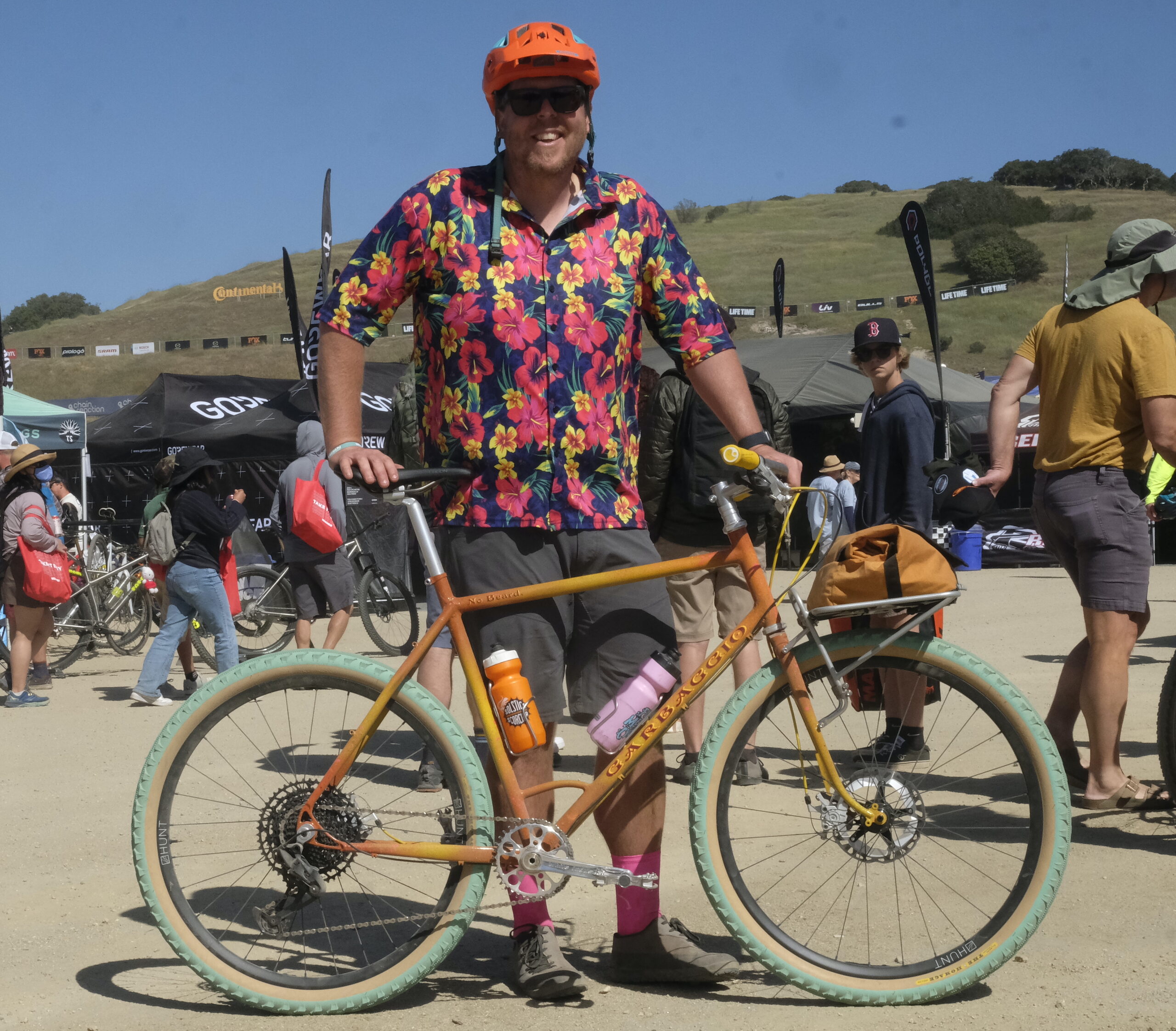 This shirt wearer is the very happy Brian Doll, with his Garbaggio Nutmegger. He told Nick that he wanted a party bike ‘that could be carried about on trails that only exist in your heart’.