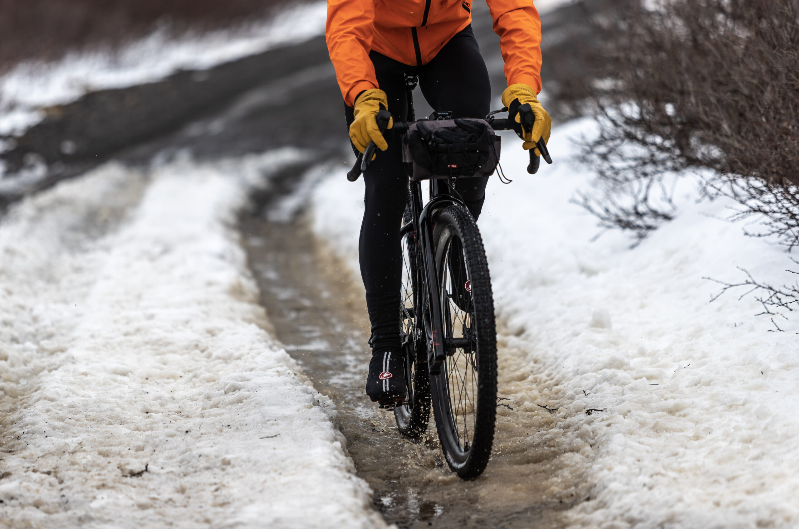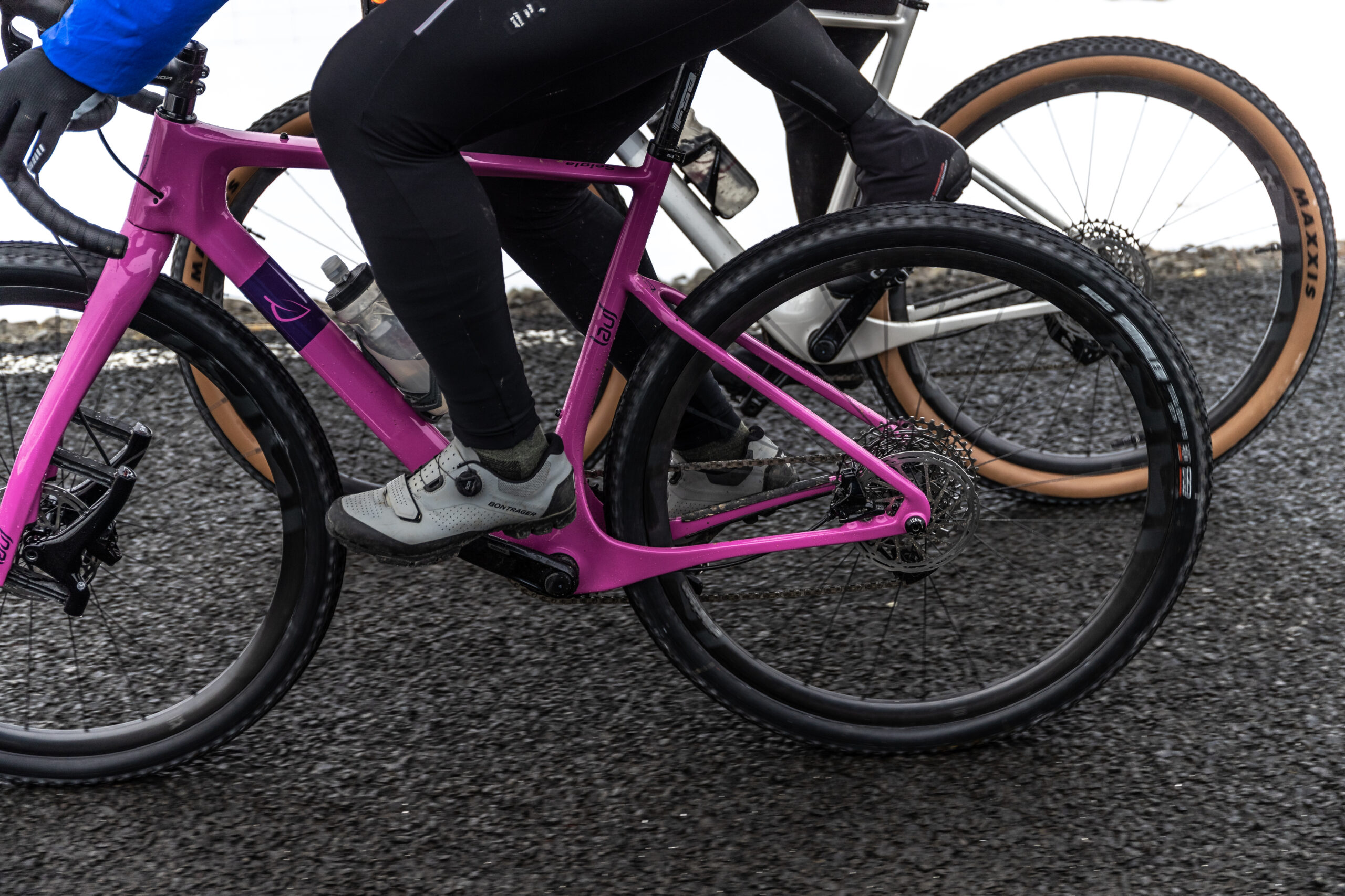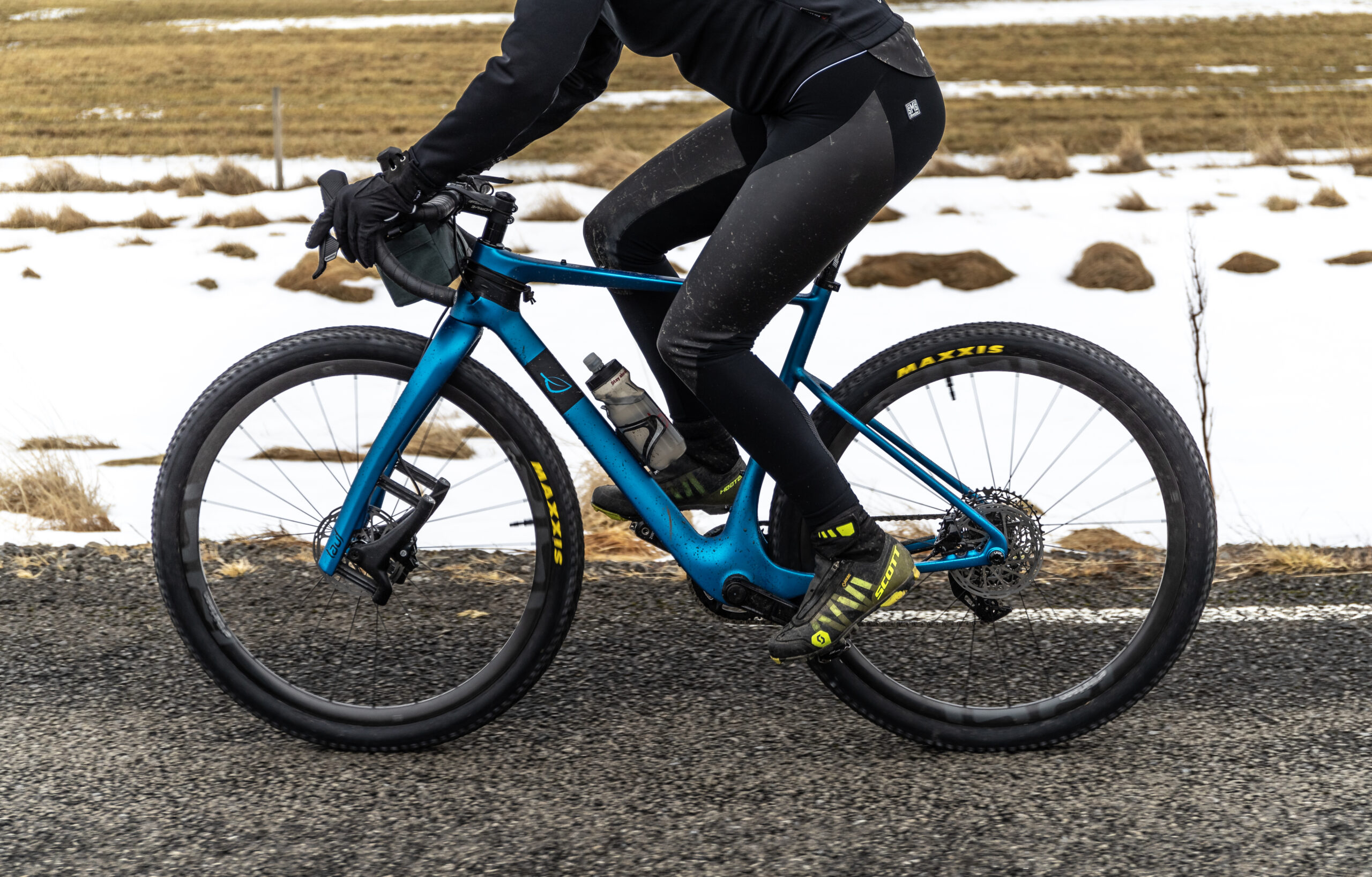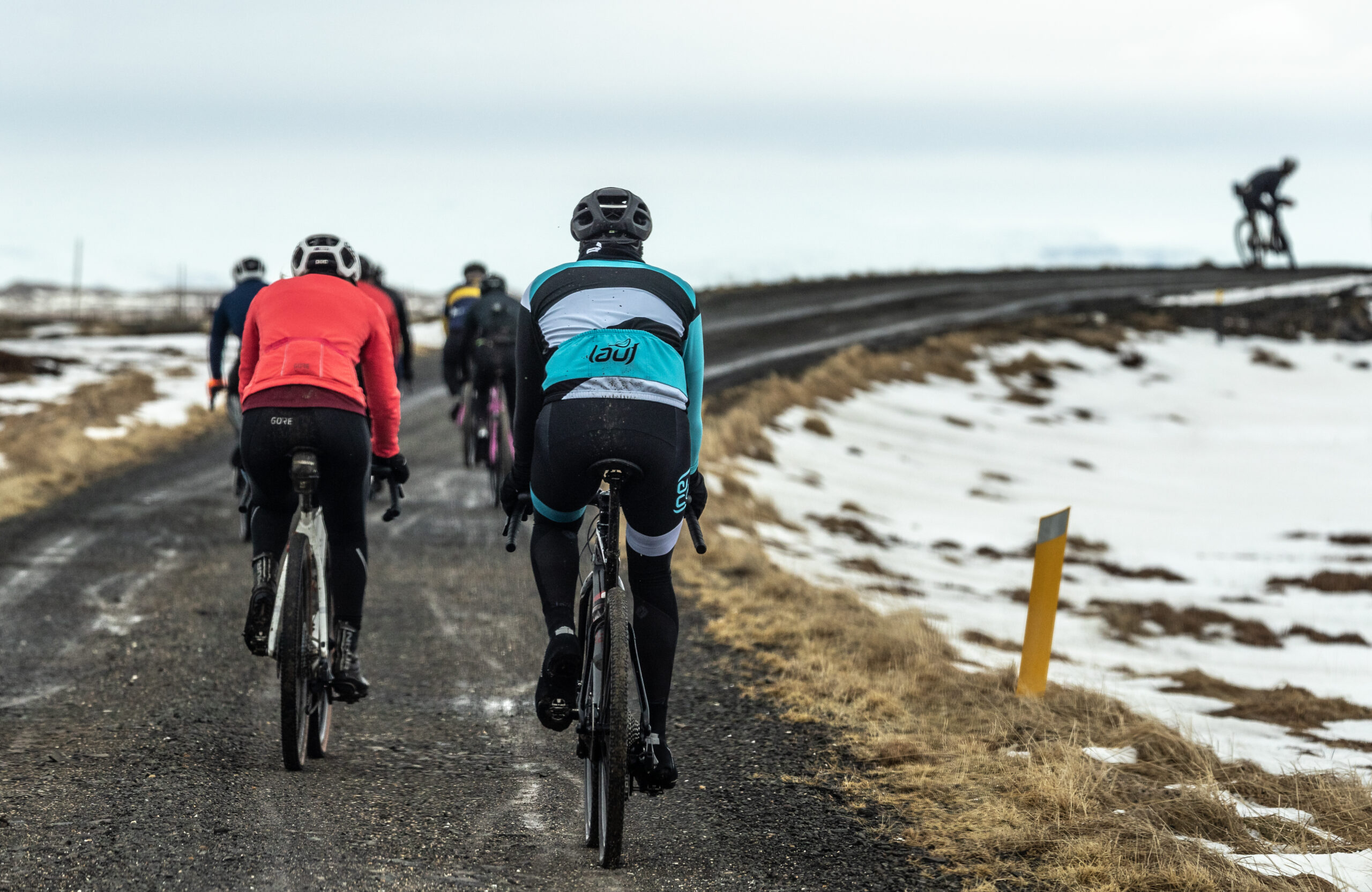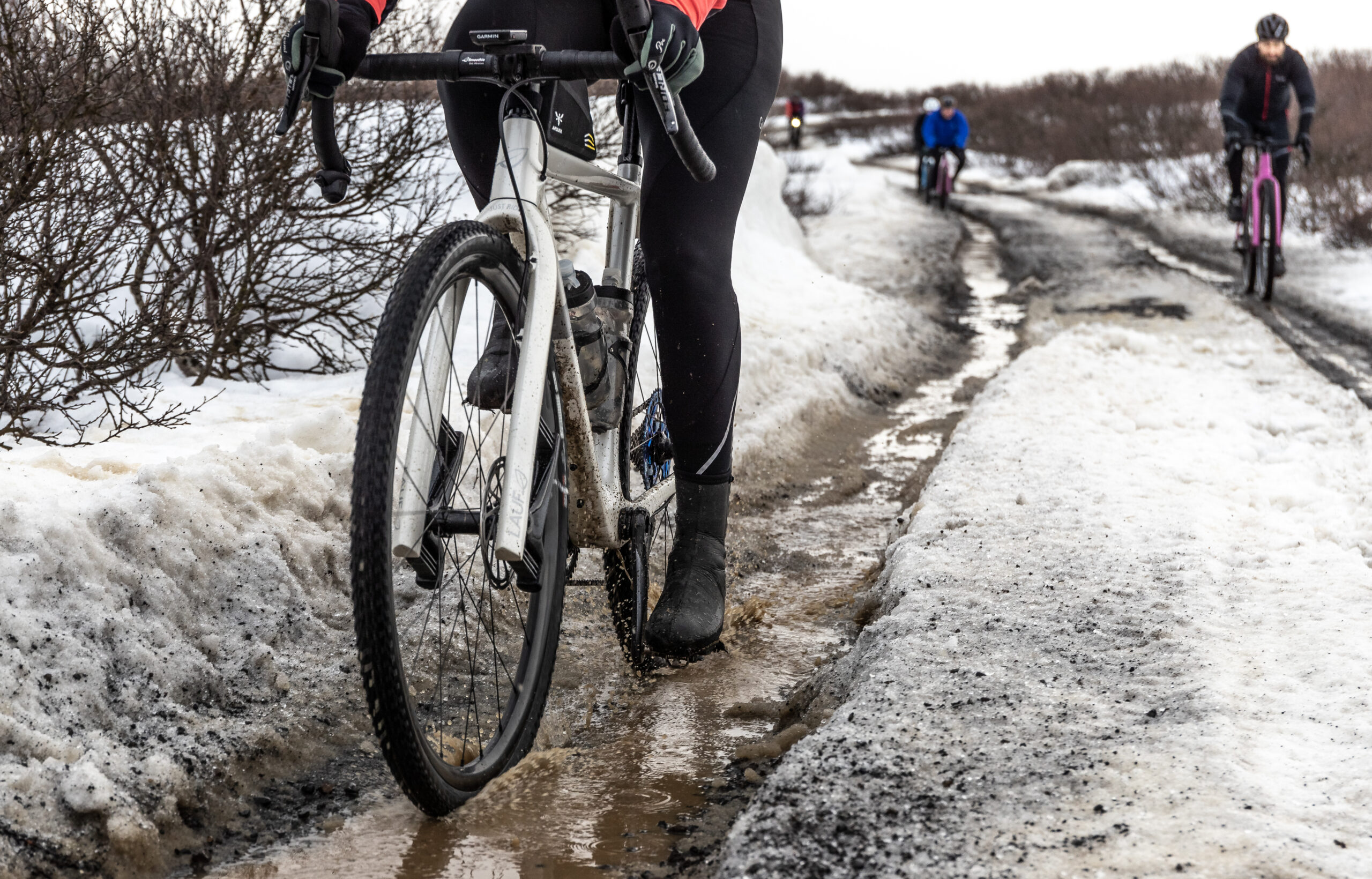 The launch was held in Iceland in March, after a particularly long and snowy winter. With the island’s interior – the mountains and valleys seen in all the tourist brochures – still under feet or inches of snow, we had to stick to the fringes of the island, in the flat lands close to the sea. A mix of paved and gravel roads awaited us, with barely any elevation to speak of. However, the ground was in the process of thawing, turning many sections of gravel into sponge-like softness. Here, there was no firm line through – like a beach ride, you just had to keep spinning, wrestle the bars, and hope to maintain forward motion until the ground ceased sucking you in and released you to pedal onwards. At one point, we stood to the side of the track to let a milk tanker pass us. The ground wobbled, as if we were standing on a trampoline. A strange sensation indeed, and one that went some way to illustrate just how much momentum these soft sections were sucking from us.