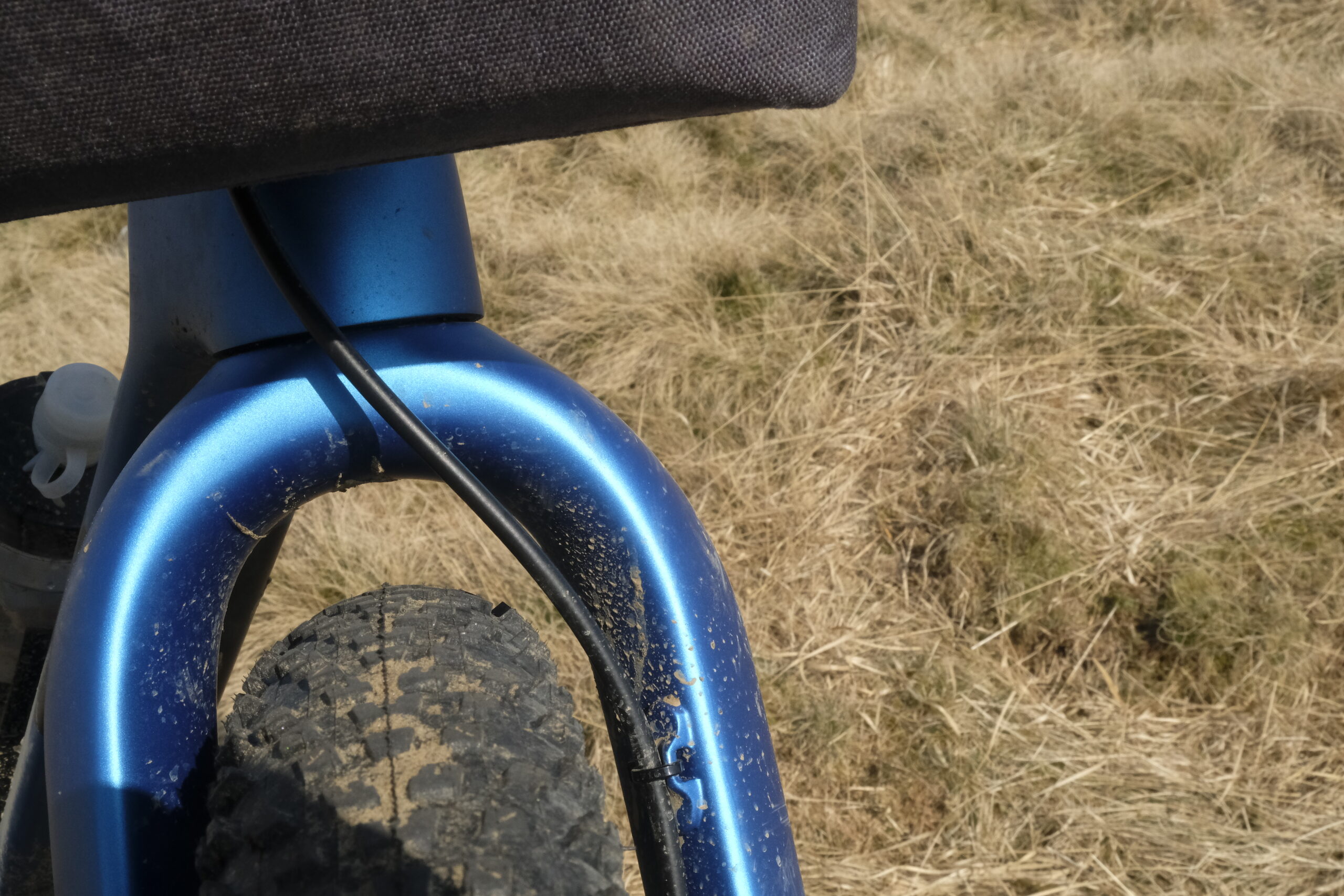 The rougher terrain around me did give me chance to make some observations that I missed on the gravel of Iceland. Firstly, under compression I experienced the occasional buzz of the large volume tyre against the front brake hose. A closer look at the cable mounts suggests that there might be room to shift the mount up a little more, making sure that the hose is completely clear of the tyre before wiggling its way to the handlebars. It’s a minor point, and can be solved by some careful cable tying and tucking, but especially if you are going to add a bar bag you should take extra care with the routing here.