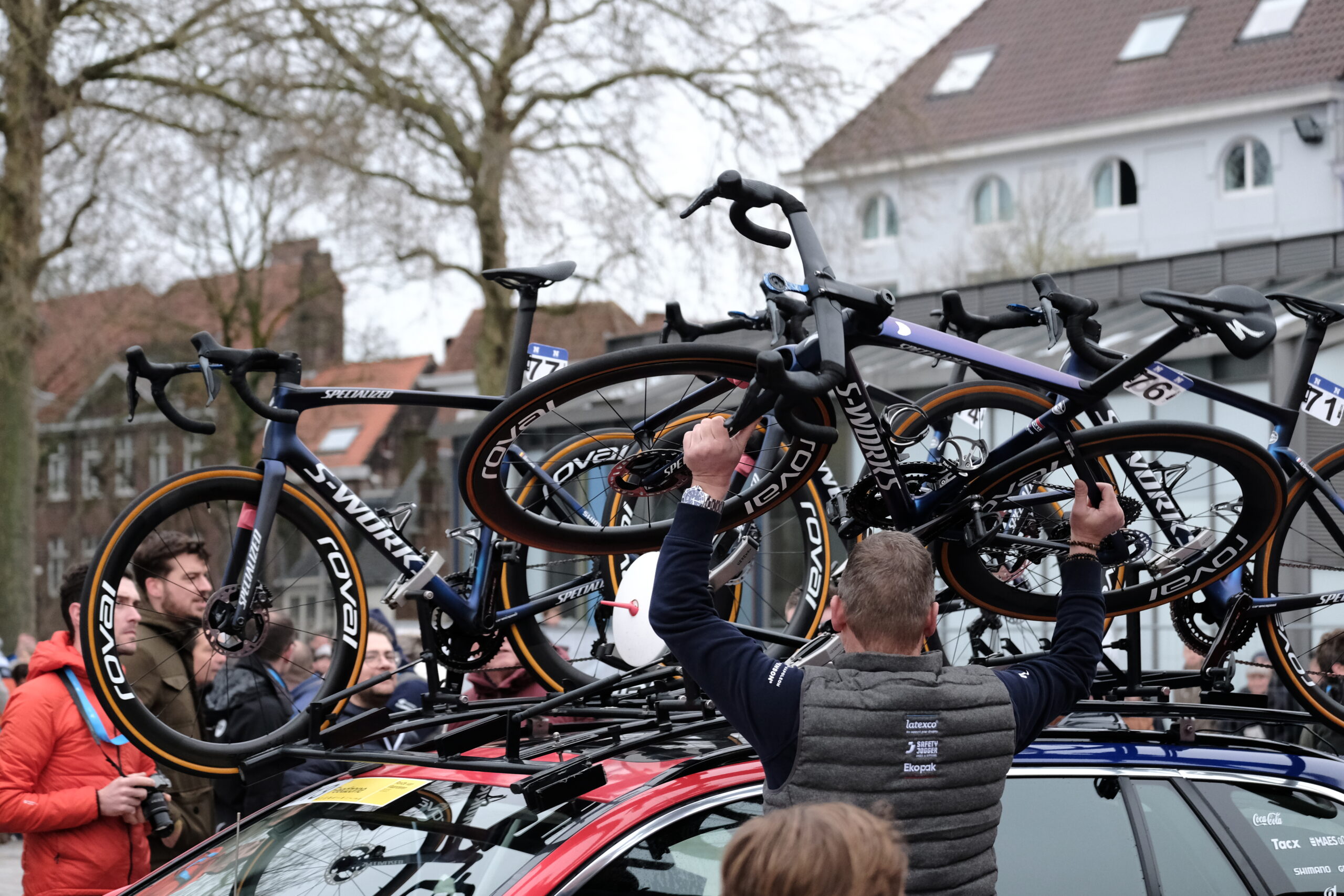 One of the funny, but obvious, things about following the ‘Ronde’ is that, as you’re rushing from place to place, sometimes driving for half an hour to be sure to get ahead of the (44km/h) racers, is that for half of Belgium, it’s a normal Sunday and, so in between all of the press, public and team cars racing to get into place, are a load of oblivious folks heading off to the DIY superstore or for lunch with friends…
