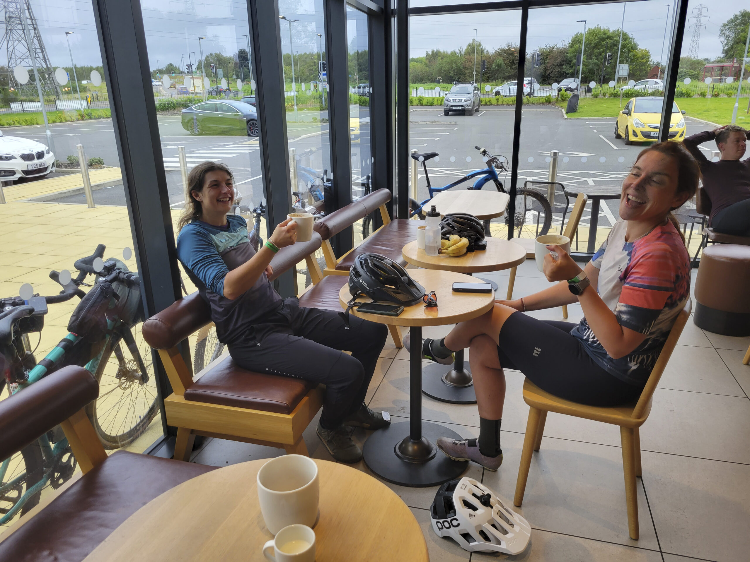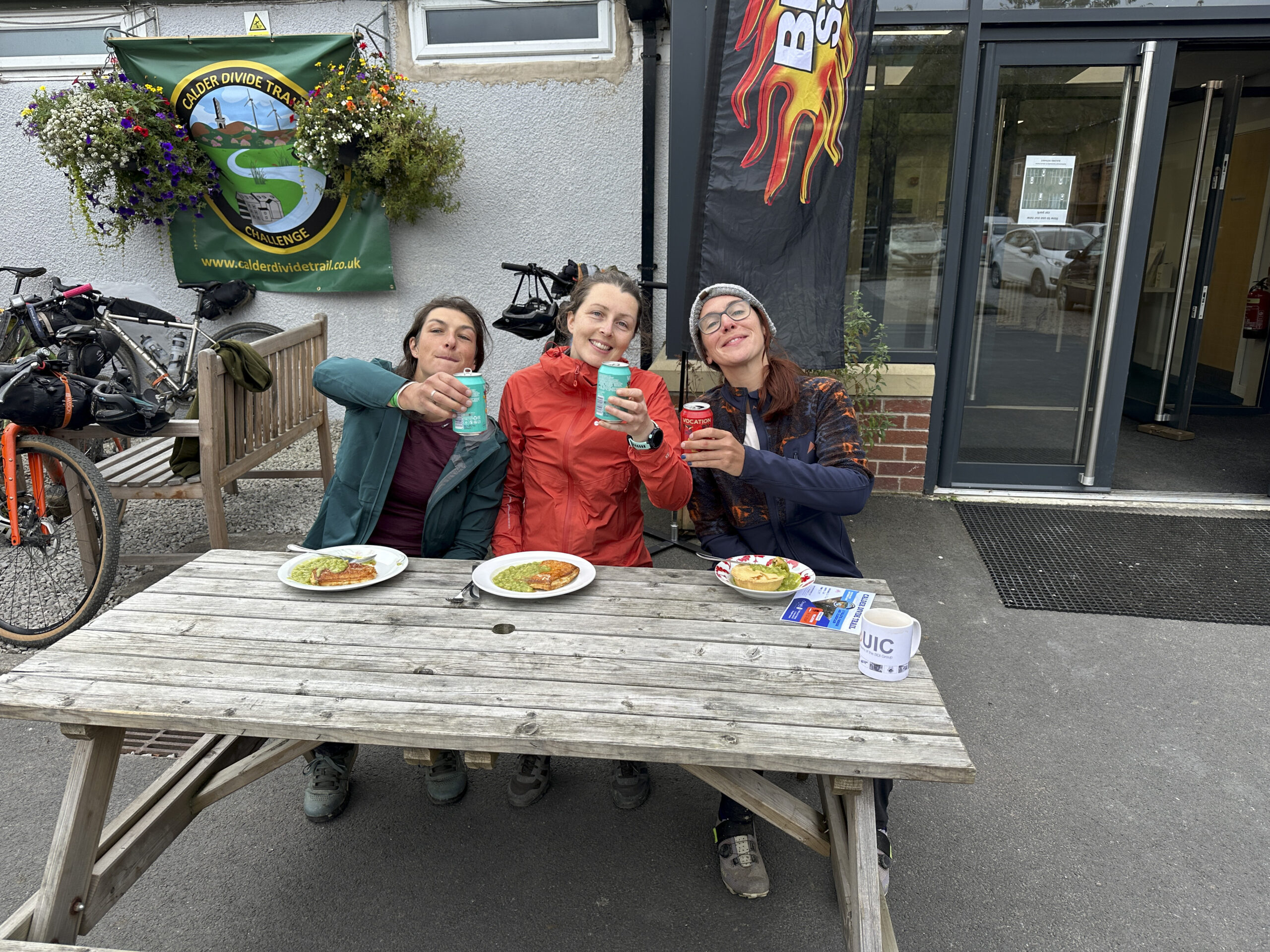 Our adventure was a social pace with plenty of sightseeing, snack stops and chatting to other riders along the way. The weather tried to turn us away, but the company kept us going. When we arrived at the campsite the pizza van had run out of food, so we gathered all those that hadn’t eaten and headed to a local pub, The Farmers Boy in Shepley. Despite it being 13 minutes before the kitchen closed, the staff were incredibly accommodating and made sure we were all warm and fed before we left. A late bedtime, a late morning and plenty of coffee were to follow. We completed our journey through some of the most fantastic trails in the area, bumping into plenty of other riders along the way. Check out the video for the full adventure!