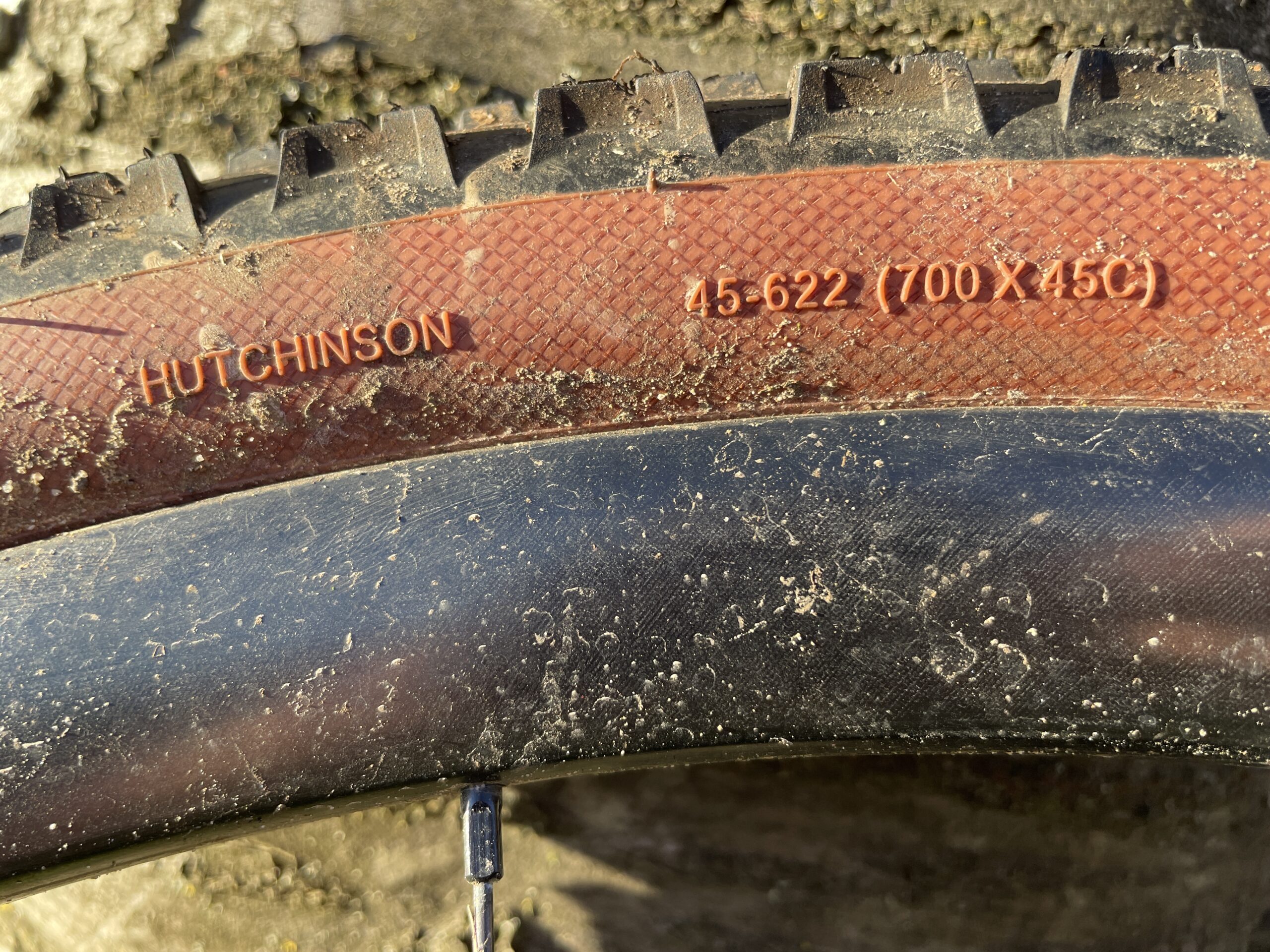 I have had the mid-sized 700x45C Hutchinson Tundra tyres in bronze colour to test. These are made in France – as are all the bronze sidewall versions. The black ones are made in Asia. The bronze ones – shall we be done with it and call them tan wall? – also have ‘Hardskin’ puncture protection, while the black ones have ‘Reinforced+’. So if you’re looking to buy, be aware that the colours come with performance differences.