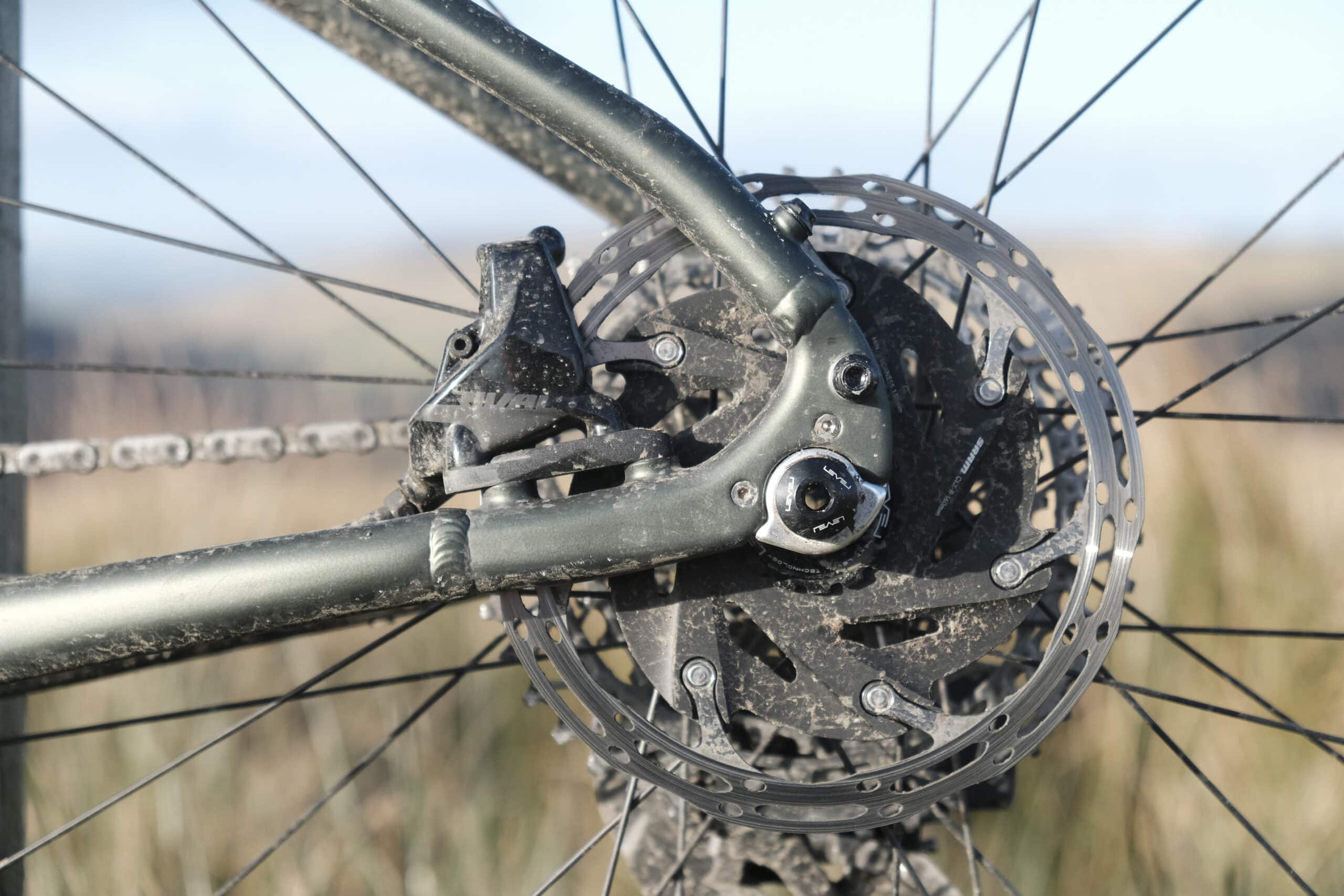A sleek modern design with mostly smooth welds (don’t look at the rear triangle) and an excellent paint job that catches the light and looks quite striking when it’s not filthy. The Ribble Gravel AL is only available in green unless you use the option for a custom colour from £350 upwards, but personally I’d be super happy with this frame colour.