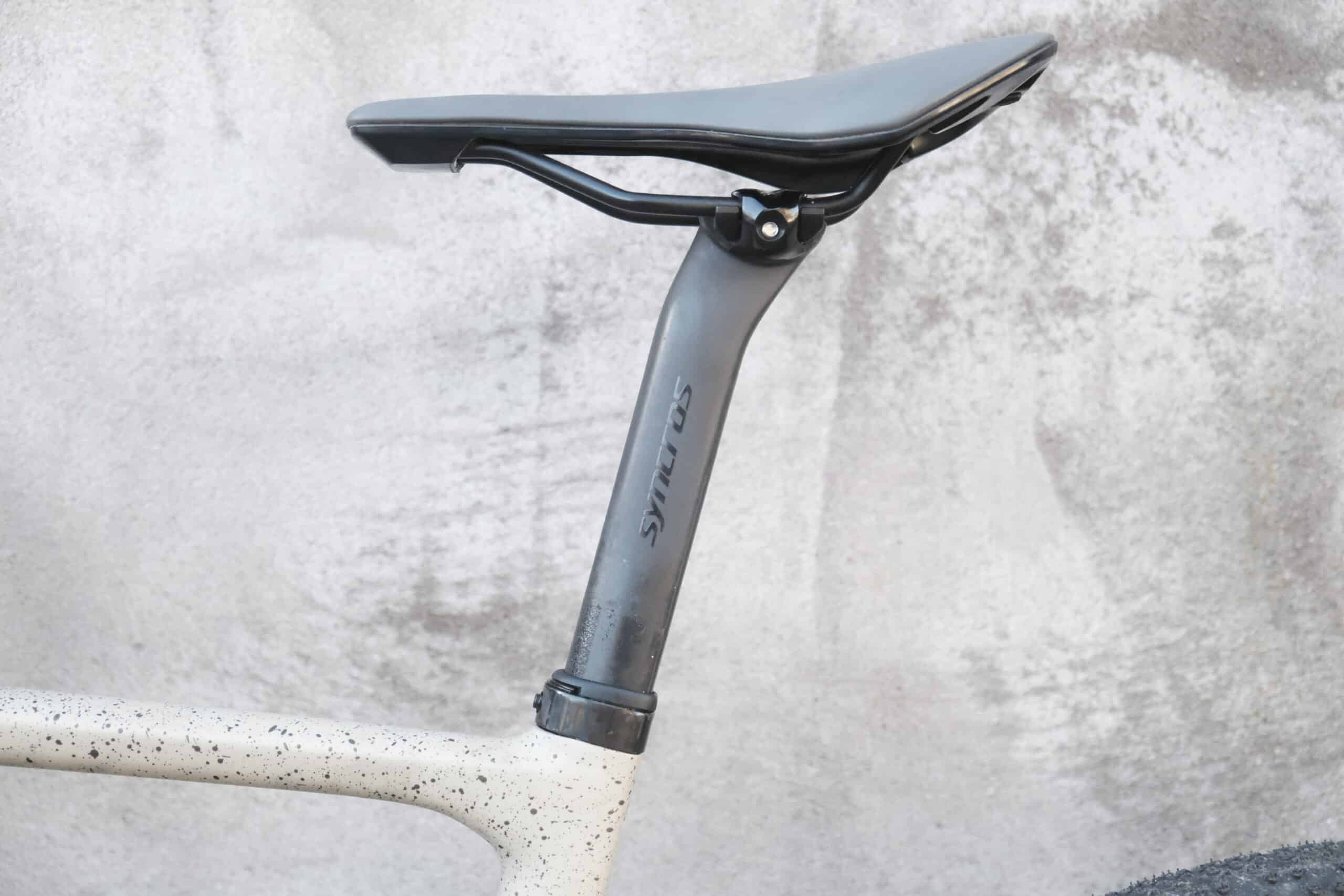 The Syncros finishing kit includes a carbon handlebar and seatpost and an aluminium stem. All of excellent quality with the handlebar deserving of a special mention. It has an ultra short reach of only 60mm which is the least of any drop bar I’ve ever known. It also has a short drop of 115mm and 16 degree flare. This culminates to a very compact feeling cockpit around the hoods and drops which feels easy to switch between the two – an asset when riding off road.