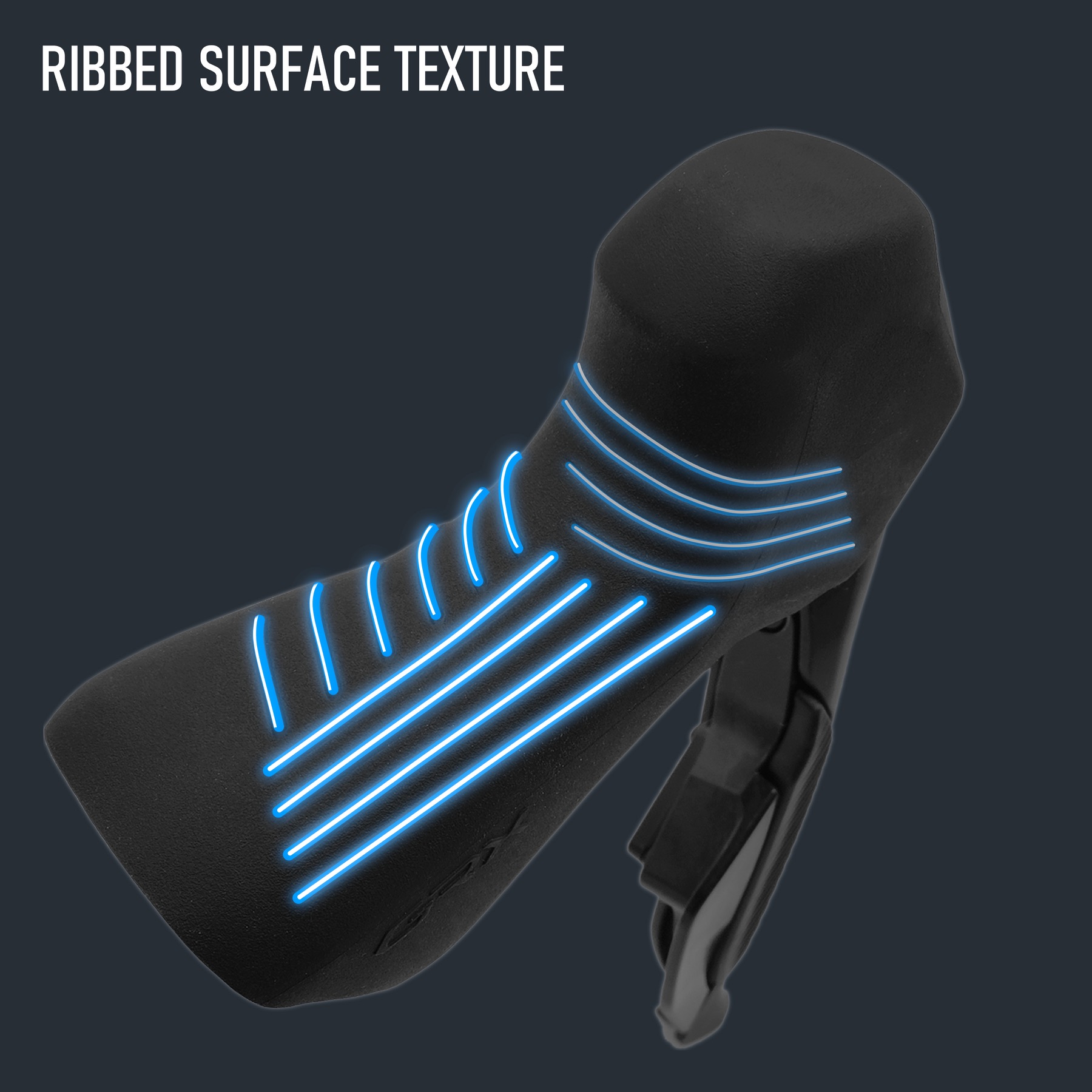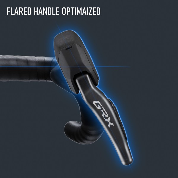 The new dual control levers also employ a gravel-optimized body shape cross-section for seamless integration with flared handlebars. Rounder in shape, the transfer from handlebar to hood is smoother and creates a larger surface area to help eliminate pressure points.
