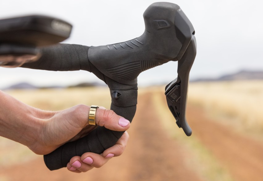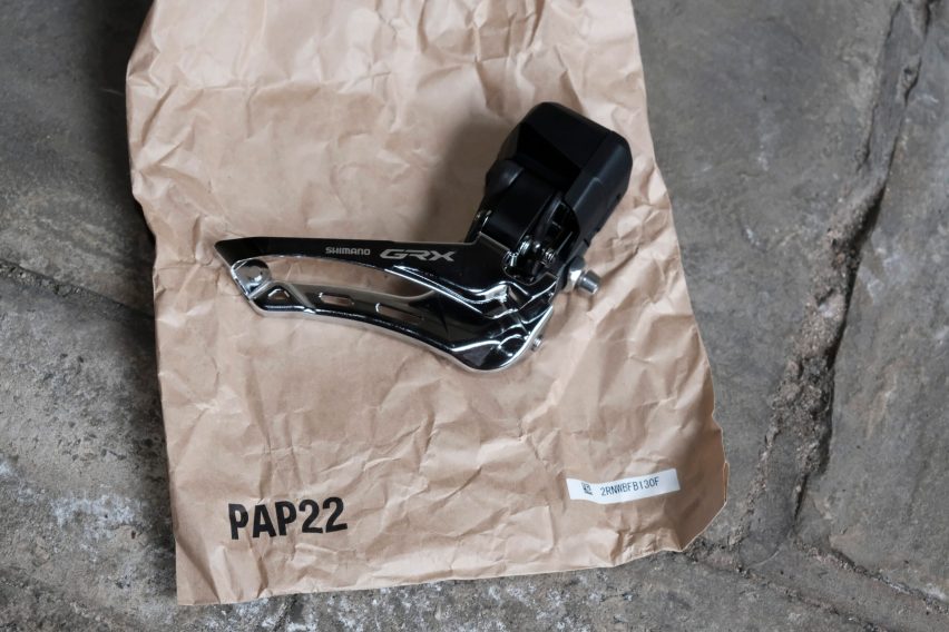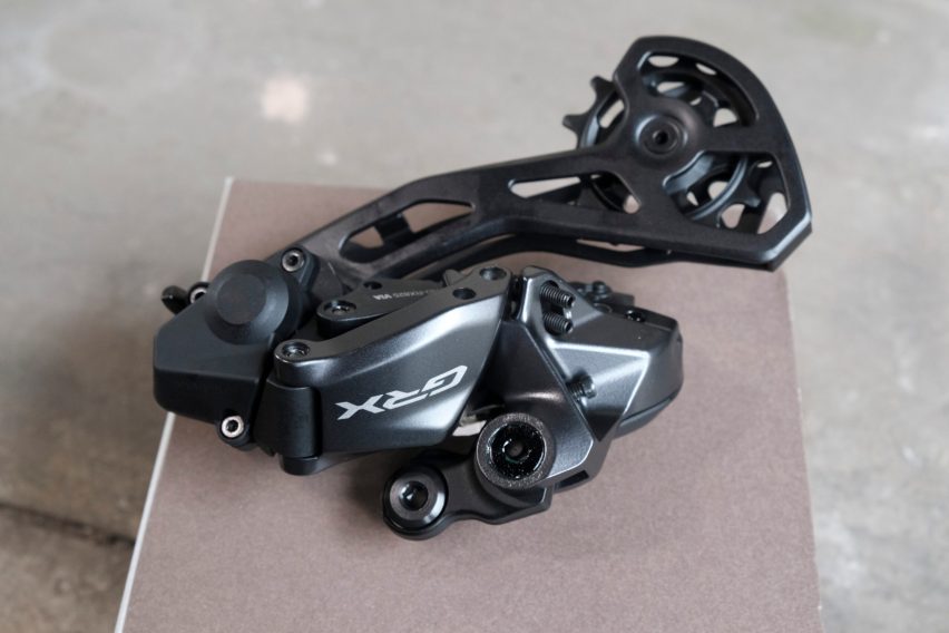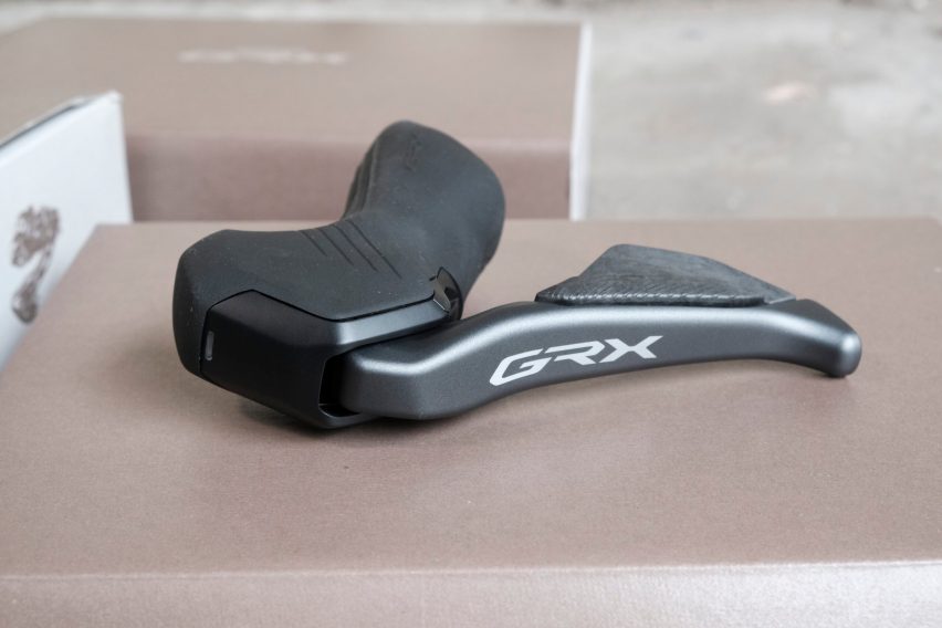 It’s not just a road groupset with a moustache and dangle bag, though. The chainline is shifted outboard by 2.5mm for better clearance with larger tyres and, like with mechanical GRX 820, you do get the extra security of a Shadow RD+ (switchable) clutch rear mech. In addition, the brake hoods are more rounded in anticipation of being run on more flared handlebars than a conventional road bar.