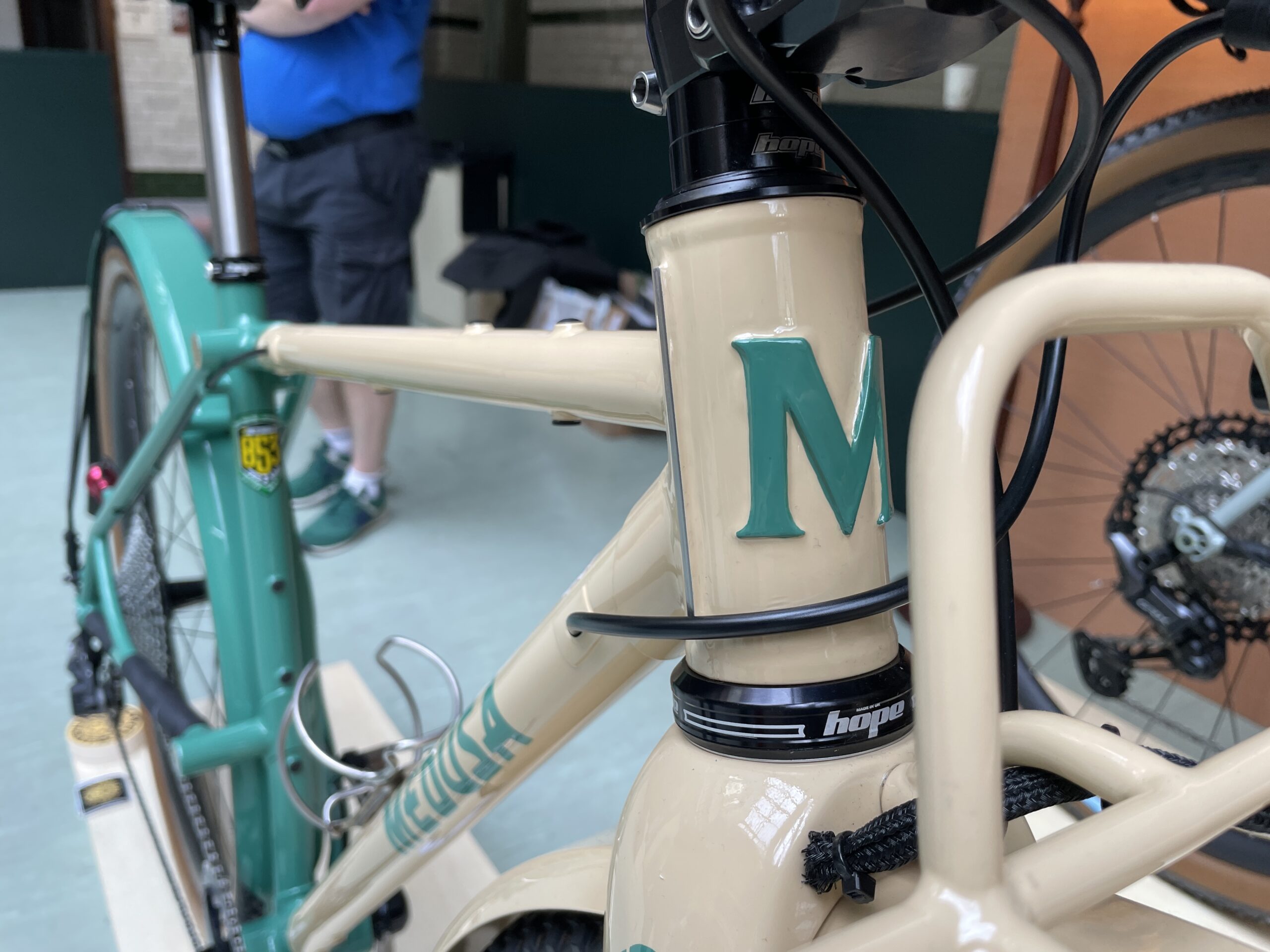 Two beautiful gravel bikes caught my eye – or were they looking at me? – at Bespoked, Manchester. Their builder, Pete, talked me through them – and his many talents that lead them to be as they are. His bikes took both the Best Gravel Bike and People’s Choice Awards at the show.