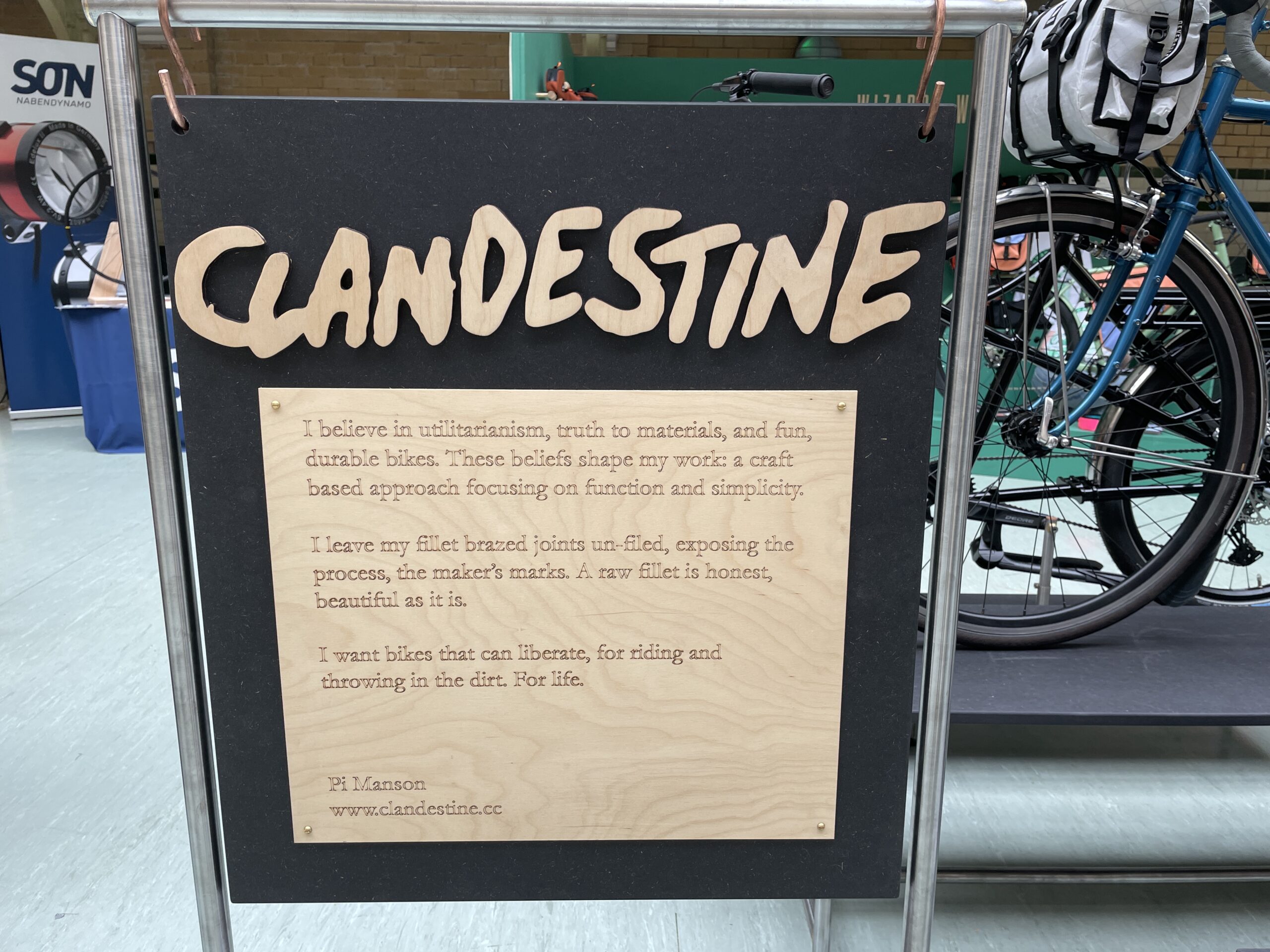 Pi from Clandestine makes beautiful bikes that make me want to pack a picnic and ride off into the sunset. Practical, fun and gorgeous, I’d happily have ridden off on any of the bikes he had on display at Bespoked, Manchester. Trying not to fangirl too hard, I stopped him for a chat – talking to the makers at Bespoked is sure to have you discovering all sorts of things you wouldn’t otherwise have found out.