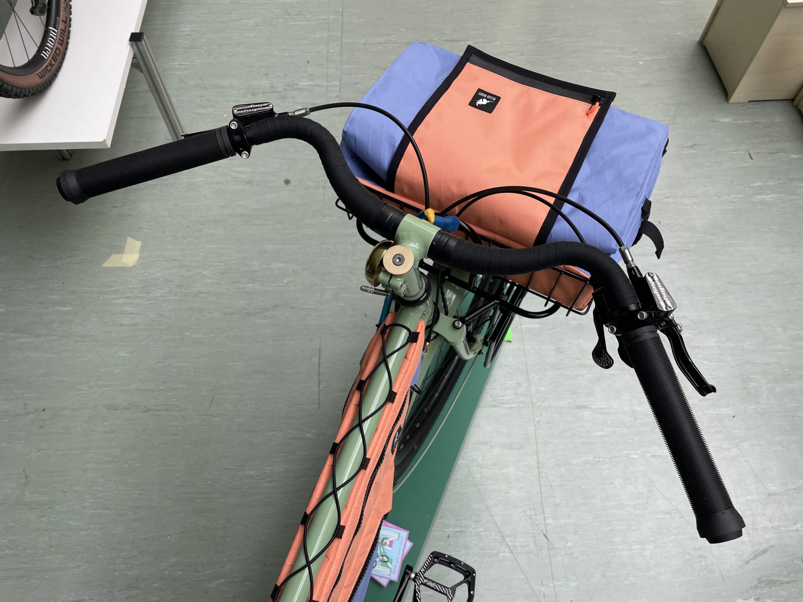But it’s also easy to take off, so unlike a basket bag, if you want to carry something really big – like a bag of compost or something – you can pedal to the garden centre, load up your compost, and then just like put the strap of the bag on top, so you’ve got like an easy-to-use big platform.