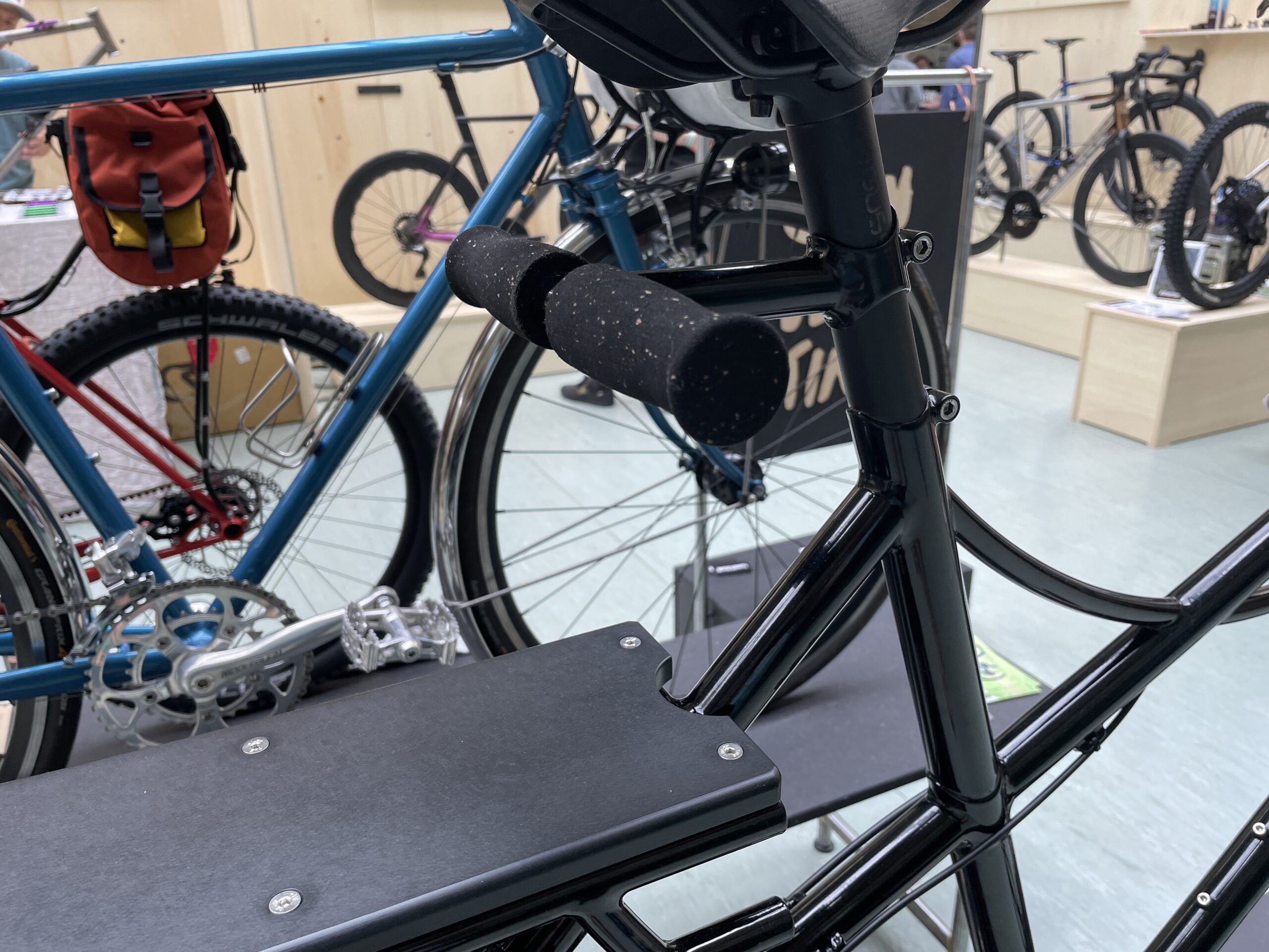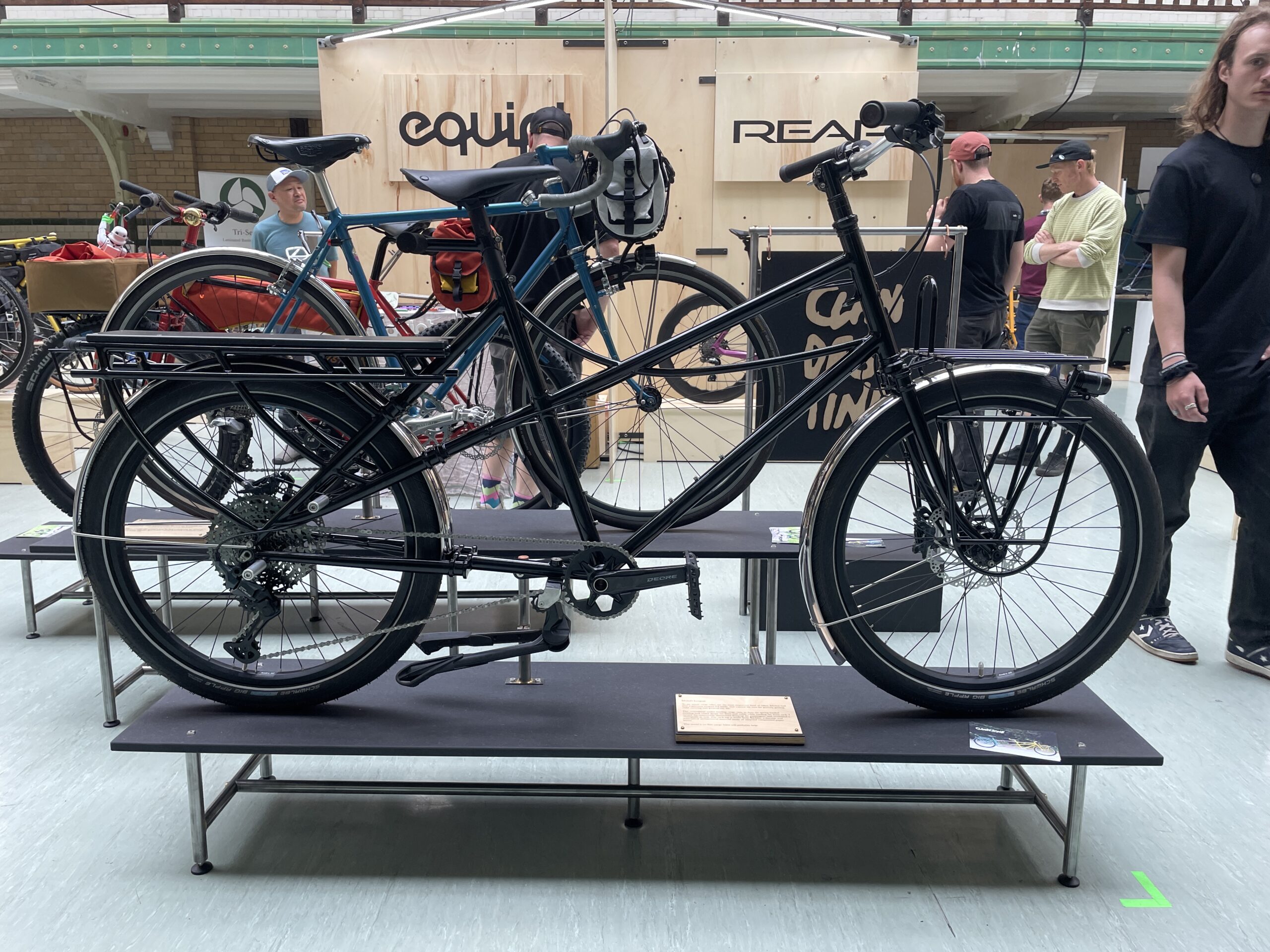 So then, over back on your stand, there’s a mountain bike. Well, it’s a Carrier, but it’s got a Pinion on it, and it’s got some chunkier tyres.