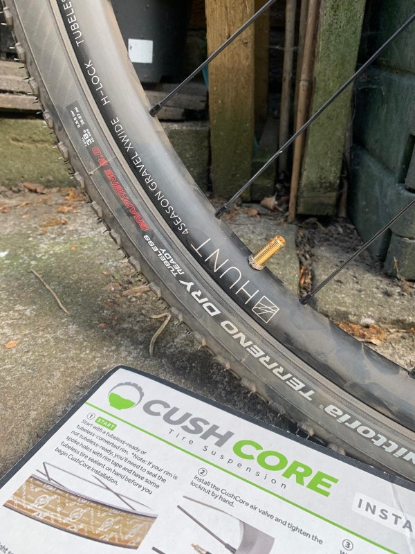 I went looking for solutions to the harsh ride and lack of soft condition traction and decided to add Cushcore Gravel liners so that I could use lower pressures without jeopardising my rims or increasing the potential for pinch flats.