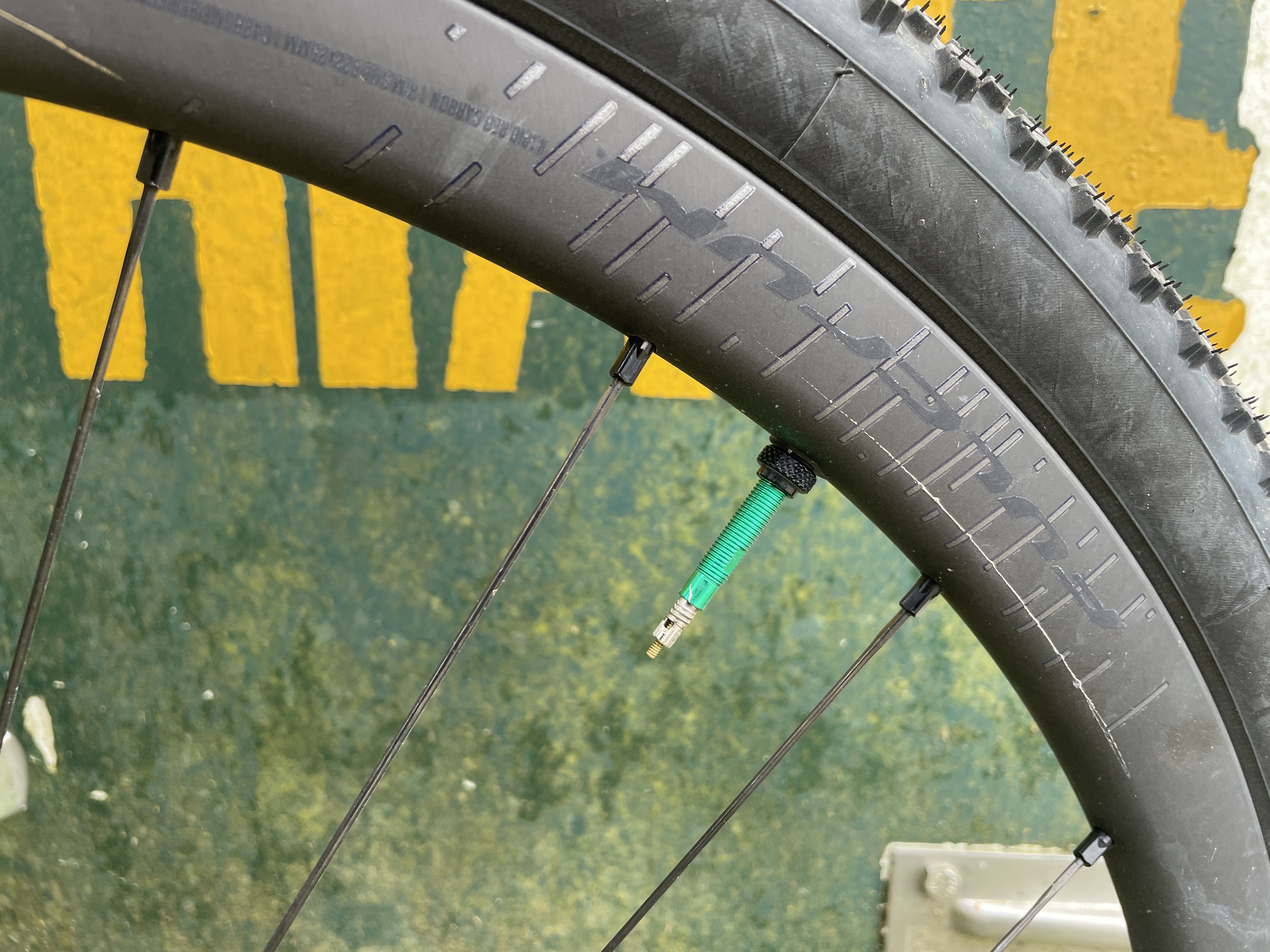 The liners come with green valves that let the air in sideways and stop any clogging up with sealant. I suspect careful shopping would find other liner and sealant friendly valves would work too, but the green valves do make it easy to spot who is running these Vittoria liners. Apparently if you watch the pros closely, you might spot the odd green valve on a rider sponsored by another tyre brand.