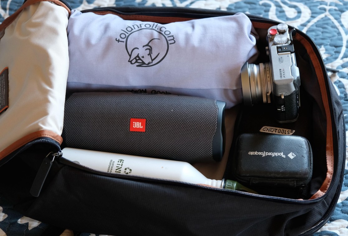 For anyone who travels light and fast, whether by bike, train or aeroplane, with work and home gear mingling in the same, cramped bag, the Fold+R°ll is a way of keeping those worlds separate.