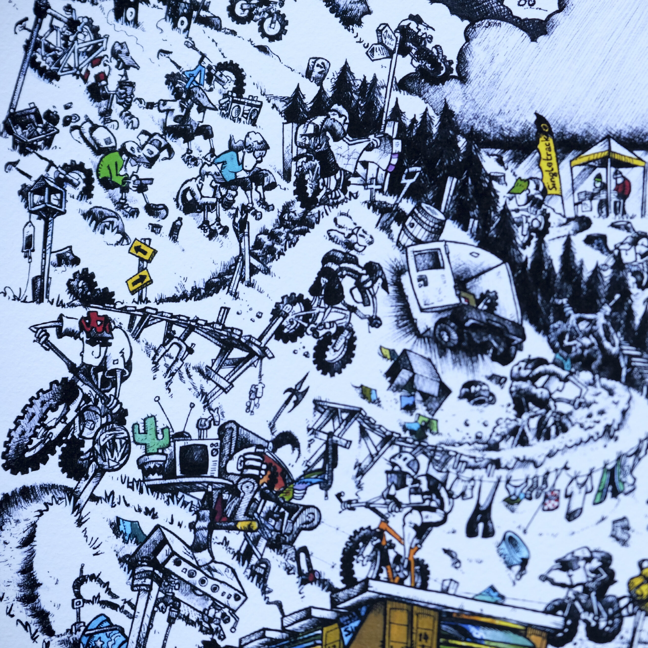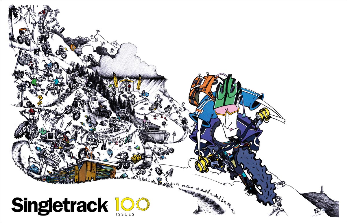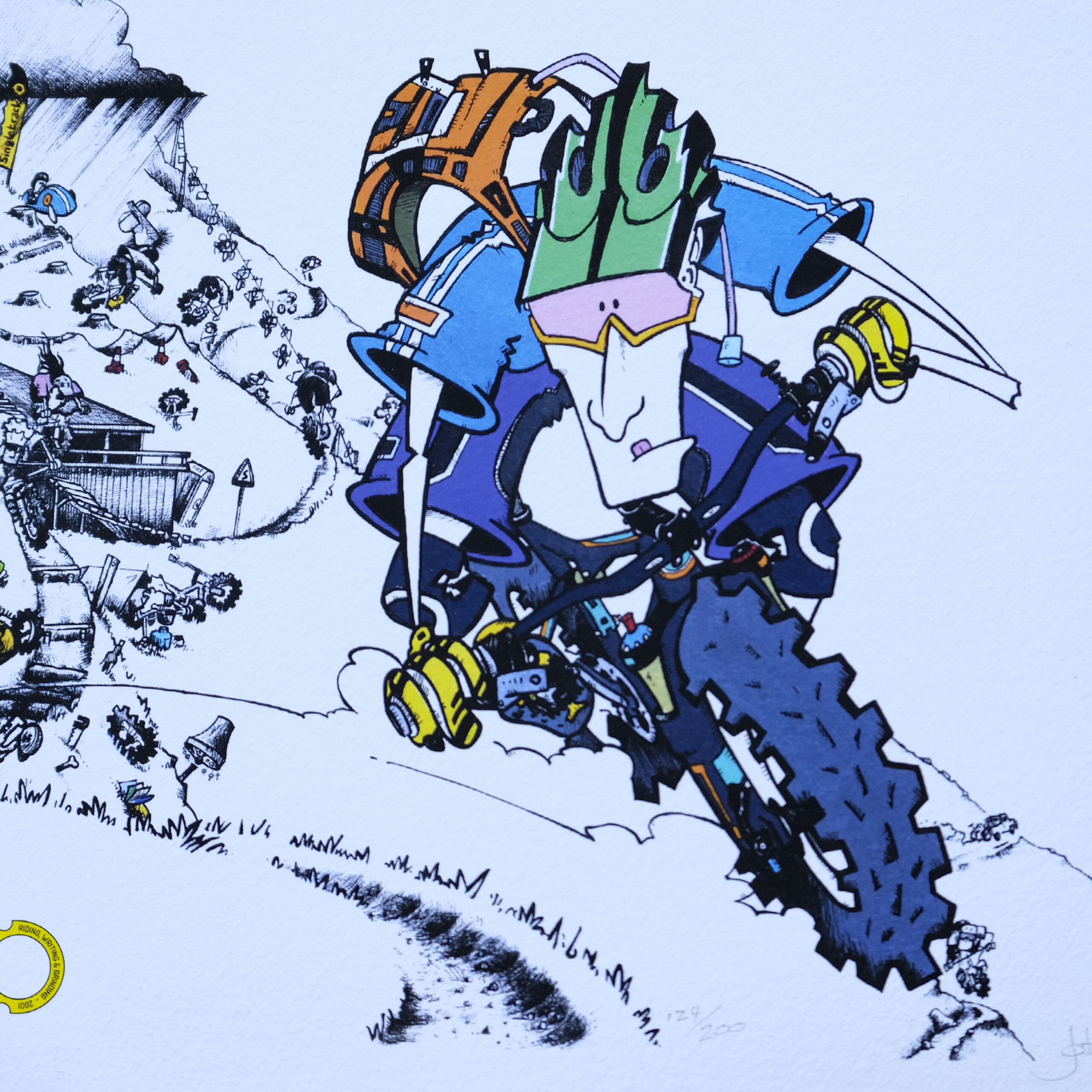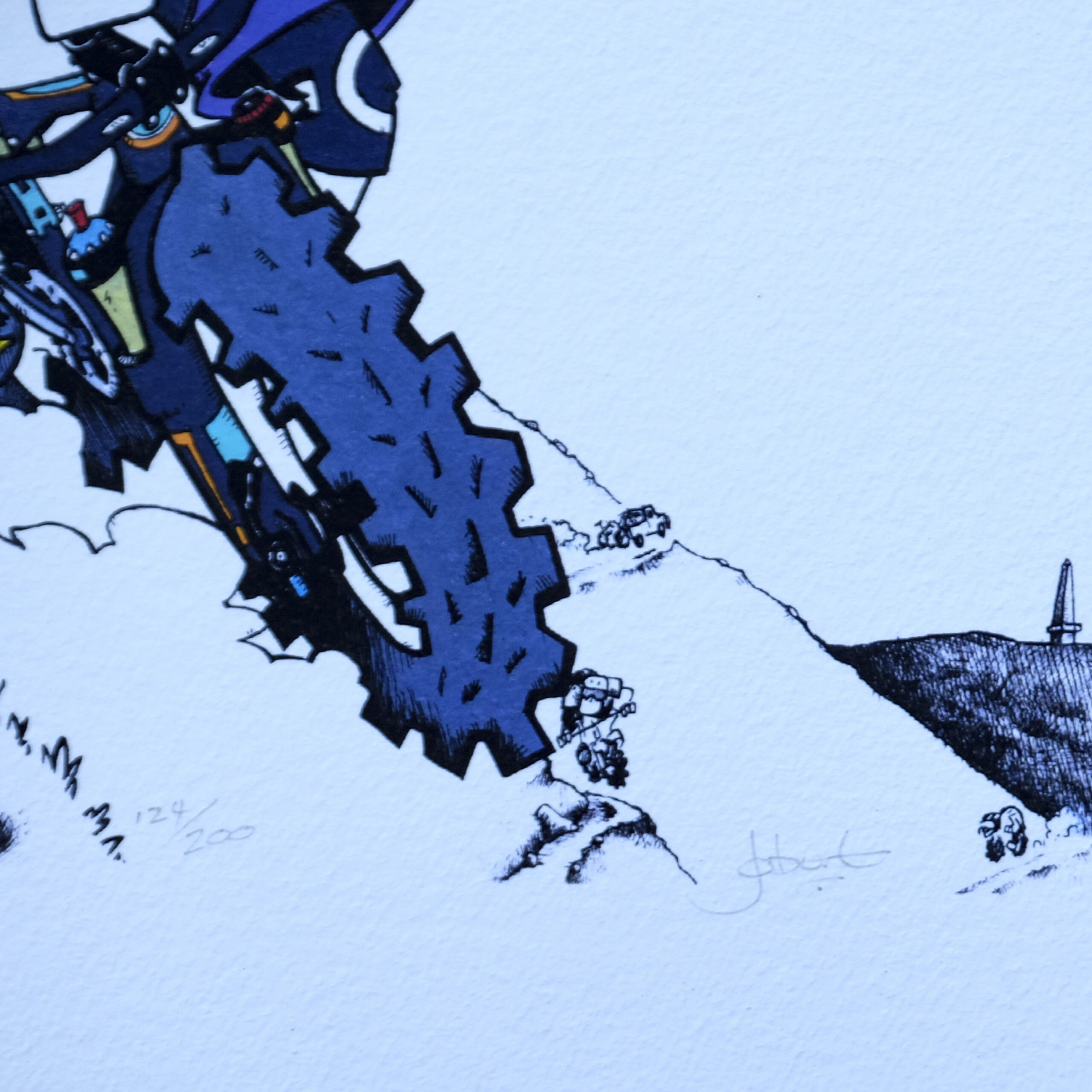 Jo Burt is best known for “Mint Sauce” the mountain biking sheep in MBUK magazine. He designed this one off piece for Singletrack’s 100th issue. If you are a Jo or Mint fan, this print is a must have.