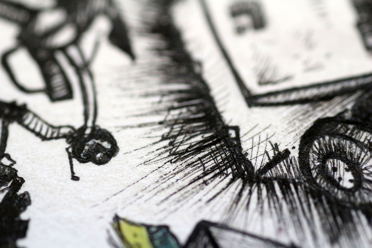 A recent discovery deep in the vaults of Singletrack Towers, these Jo Burt prints are a remarkable thing to behold. There is a lot going on in the detail. It’s the sort of picture where you will discover something new each time you gaze upon it.