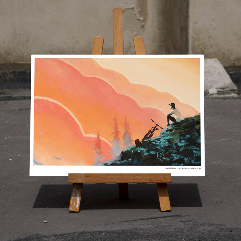 Andes says… “It feels like we often get caught up in ourselves and our self fulfilment projects these days. We spend so much time and effort staring at our own reflection that we tend to miss the bigger picture. With this painting I was hoping to illustrate one of those spots along the trail where we can disconnect and step away from ourselves for a little while. This is acrylic/oils on illustration board. I’m 100% stoked to be on the cover.”