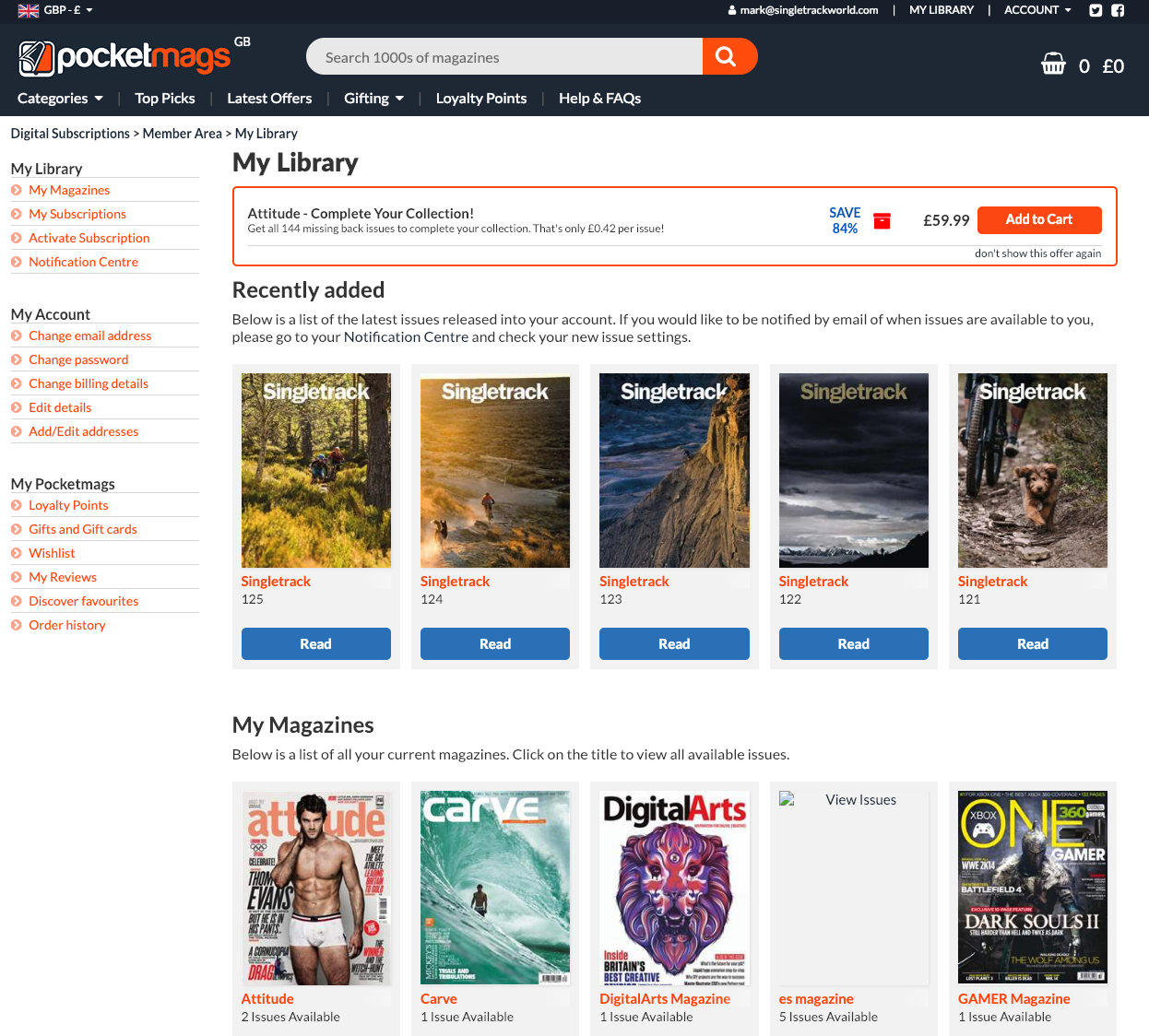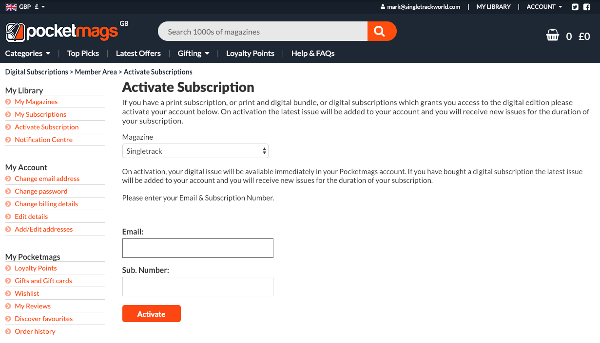 In order to access your subscription you must first create an account with Pocketmags via their website. From inside your Pocketmags account you will be able to select Singletrack magazine and access your future issues.