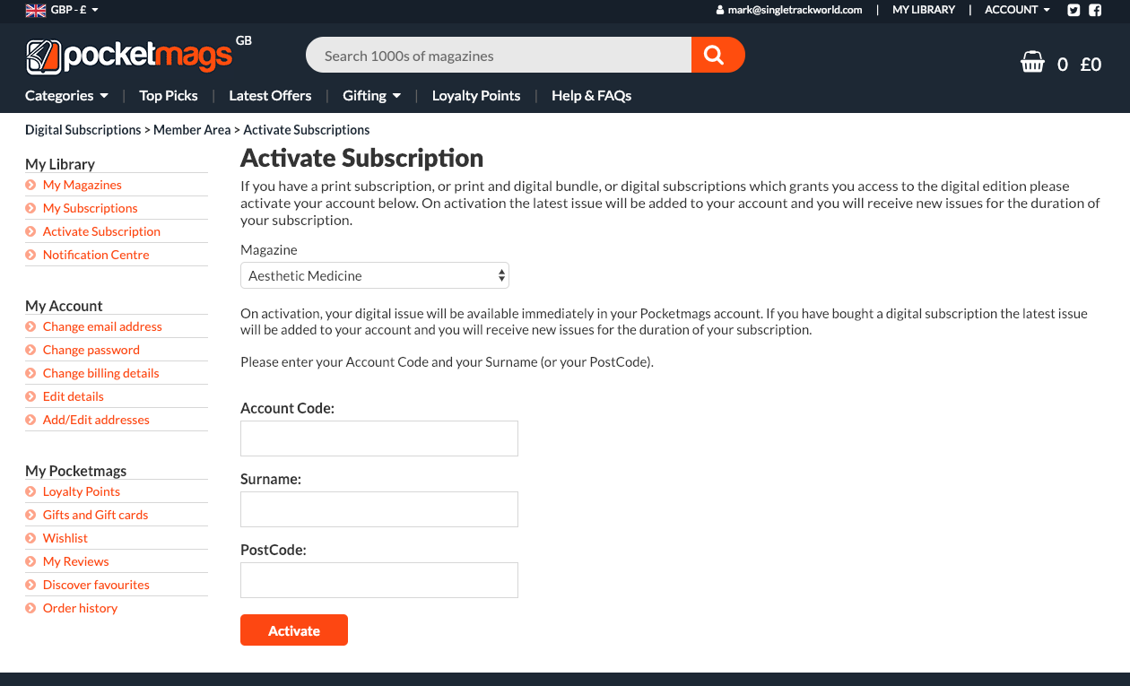 Step 2 – Link your Singletrack subscription to your Pocketmags account.