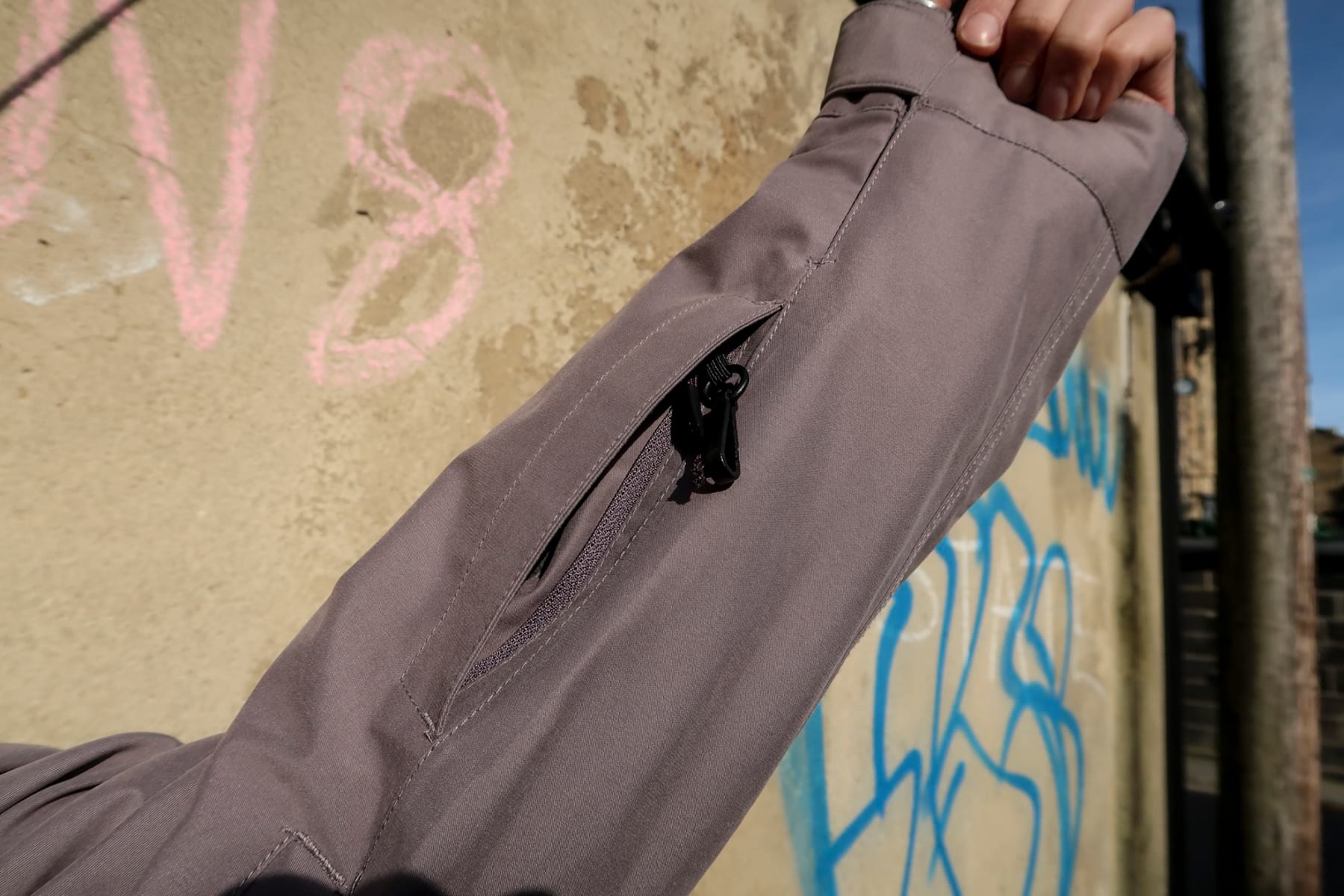 Now let’s take a look at the pockets. All six of them. Firstly, the main front pockets have a zip closure with a flap that pops closed over them, with a second entry behind. The second pockets don’t seal, but are really handy for putting something in when you’re in a hurry, or have your gloves on and can’t navigate a zip. They’re also good for just stuffing your hands in when you’re cold, without putting potentially wet hands in your main pockets. This is one of those details that once you’ve lived with them, you really don’t want to live without them.