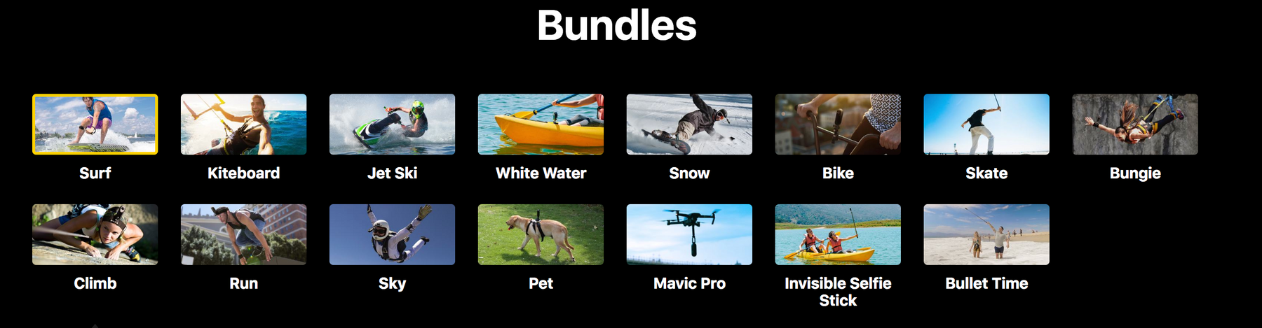 For those of us who have a passion for the extreme, Insta360 offers a boatload of accessories for the One depending on the activity you plan to use the camera for. These accessories come in bundle packages based on sports activity, so the Bike Bundle comes with a helmet mount, chest strap, handlebar mount and selfie stick while the Surf Bundle gets a floating hand grip, bodyboard mount, surfboard mount and a waterproof housing. There are a total of 15 bundles to choose from.