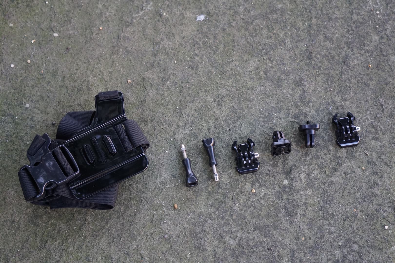 There are adhesive mounts to attach to your helmet, a chest strap, handlebar strap, extension pole, and a selfie stick too. The Selfie Stick is a little more useful than the name suggests and actually allows you to film above crowds, in out of the way places, or get closer to the action.