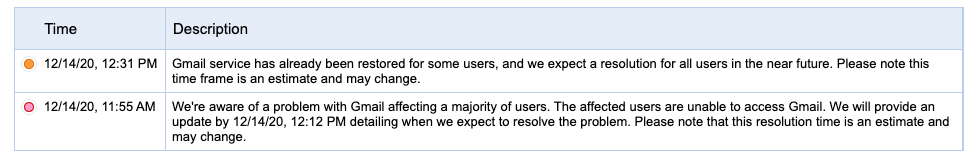 UPDATE 12:50am – Services are coming back online gradually. Some users still reporting no access to Gmail.